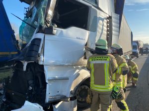 Gegen die Fahrtrichtung musste die Feuerwehr Weinheim auf die A5 auffahren, nachdem diese durch einen LKW-Unfall blockiert war und die Einsatzkräfte der Feuerwehr Hirschberg nicht mehr durch die verengte Fahrbahn (aufgrund einer Baustelle) zur Unfallstelle gelangen konnten. Ein vorausfahrende LKW stand verkehrsbedingt auf dem rechten Fahrstreifen und wurde dort von einem nachfolgenden LKW-Fahrer übersehen, so dass es zum Zusammenstoß kam. Die Fahrbahn in Richtung Frankfurt wurde voll gesperrt. Da die Feuerwehr Hirschberg aufgrund des Rückstaus nicht die Unfallstelle mit Ihren Fahrzeugen erreichen konnte, fuhr die Weinheimer Feuerwehr mit dem Rüstzug entgegen der Fahrtrichtung an. Während die Weinheimer Feuerwehr mit den Fahrzeugen vor Ort eintraf, kamen die Hirschberger Feuerwehrkameraden zu Fuß mit tragbarem Einsatzmaterial ebenfalls an die Einsatzstelle. Die verunfallten Fahrer konnten ihre LKW selbstständig verlassen. Während sich der Rettungsdienst um die Fahrer kümmerte, und die Polizei die Unfallaufnahme startete, kümmerten sich die Weinheimer und Hirschberger Feuerwehrkräfte um die auslaufenden Betriebsstoffe und den Brandschutz an der Einsatzstelle. Der Fahrer des vorderen LKW wurde bei dem Unfall verletzt und mittels Rettungshubschrauber in ein umliegendes Krankenhaus gebracht.