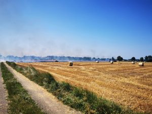 Zur Überlandhilfe ging es nach Hemsbach. Dort war ein Stoppelacker in Brand geraten und die Abteilung Stadt unterstützte mit dem AB Löschwasser sowie einem Löschfahrzeug die Brandbekämpfung.