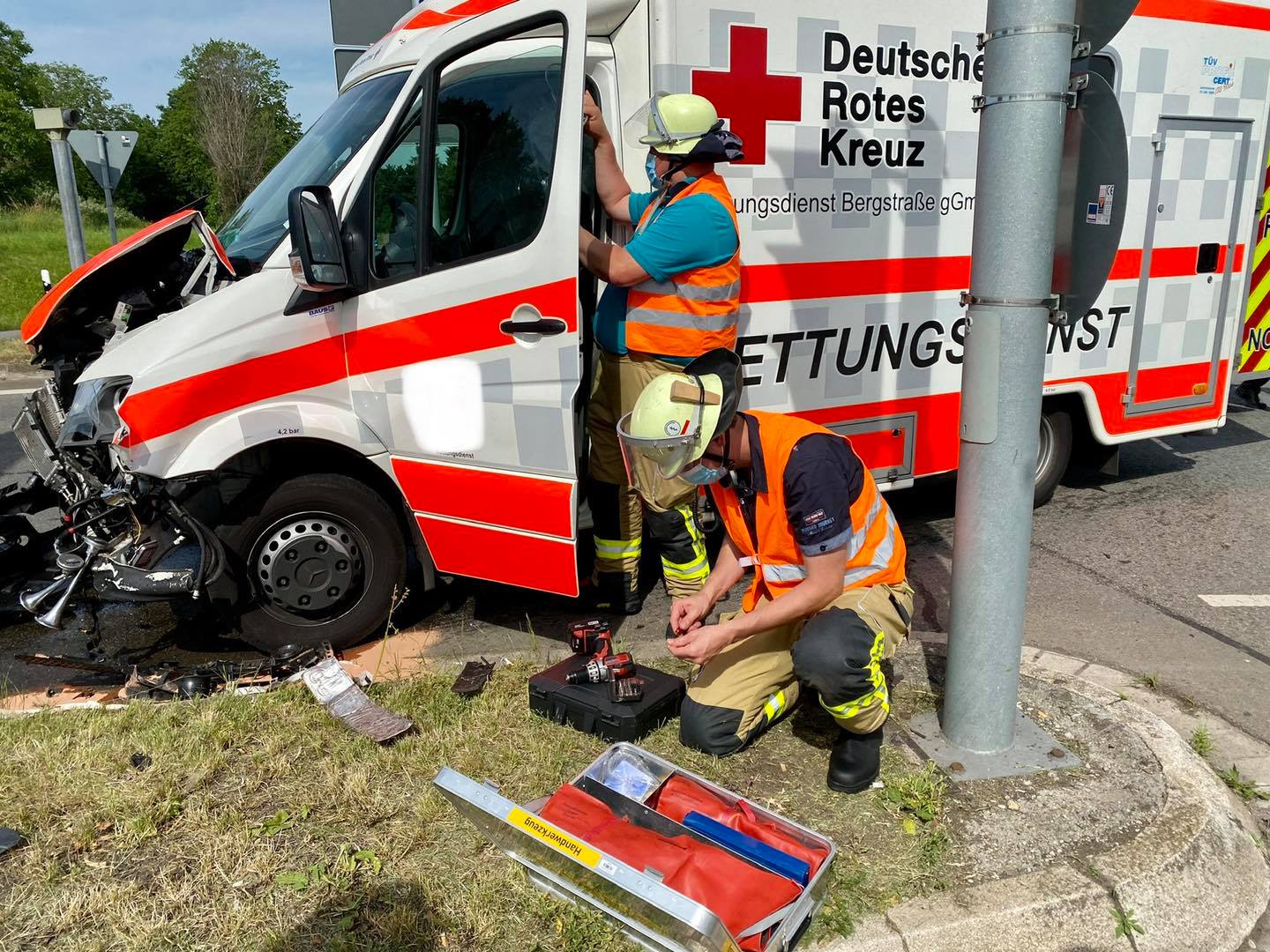 Ein schwerer Verkehrsunfall ereignete sich in der Viernheimer Straße. Zwei Fahrzeuge waren zusammengestoßen. Da Zunächst gemeldet wurde das eine Person im Fahrzeug eingeklemmt sei, wurde die Freiwillige Feuerwehr gemeinsam mit Rettungsdienst und der Polizei alarmiert. Während sich der Rettungsdienst um die Erstversorgung der verletzen Person im Fahrzeug kümmerte, bereitet die Abteilung Stadt die technische Rettung vor. Die Insassen des anderen an dem Unfall beteiligten Fahrzeugs blieben unverletzt. Parallel zu den Rettungsmaßnahmen wurde der Brandschutz sichergestellt und die Polizei bei der Absicherung der Einsatzstelle unterstützt. Hier wurde auch der mobile Sichtschutz aufgebaut. Mit hydraulischem Rettungsgerät entfernte die Feuerwehr die Fahrertür und unterstützte den Rettungsdienst bei der schonenden Rettung des Patienten aus dem Fahrzeug.