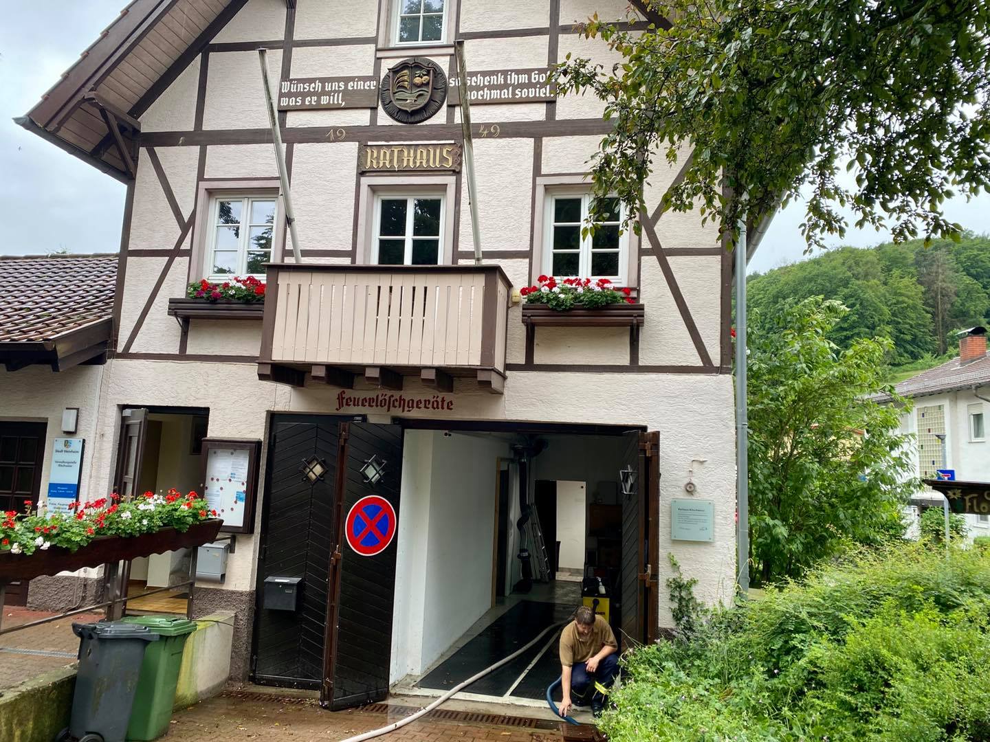 Ein Starkregen sorgte für mehrere Einsätze im Stadtgebiet. Betroffen waren die Odenwald Stadtteile Ritschweier, Oberflockenbach, Rippenweier und Müll. Die Einsatzkräfte in Ritschweier mussten nicht ausrücken, denn Sie waren leider selbst betroffen. Glücklicherweise war es diesmal „nur“ Wasser und kein Schlamm wie in vergangen Jahren. Die Fahrzeughalle und der Umkleidebereich waren mehrere Zentimeter hoch unter Wasser gestanden, nach dem ein starker heftiger Regenschauer den Ortsteil überquert hatte. Mit Wassersauger und Tauchpumpe wurde das Feuerwehrhaus und Unterstützung der Abteilung Rippenweier wieder trocken gelegt.