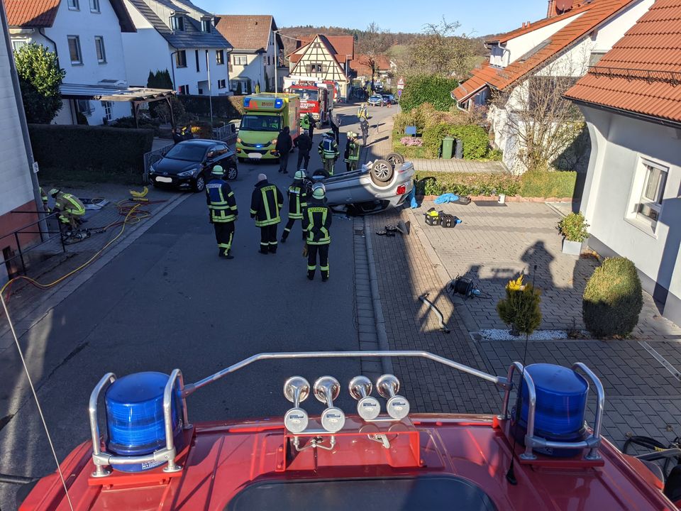 Ein Fahrzeug verunfallte in der Odenwaldstraße in Rippenweier. Das Fahrzeug landete auf dem Dach und die Fahrerin war aufgrund der Verformung des Fahrzeuges im PKW eingeschlossen, aber nicht eingeklemmt. Zur Befreiung musste das Fahrzeug stabilisiert werden und die Fahrertür mit Hydraulischen Rettungsgerät entfernt werden. Die Abteilungen Rippenweier, Oberflockenbach und Ritschweier übernahmen die Rettung und wurden durch die Abteilung Stadt unterstützt.