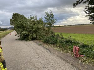Herbststurmtief „Ignatz“ wütete am 21. Oktober über Weinheim und dem Rhein-Neckar-Kreis. Bereits am frühen Morgen wurden die Bergstraßen Abteilungen (Stadt, Sulzbach und Lützelsachsen-Hohensachsen) in den Unwettermodus versetzt. Im Stadtgebiet und in den Ortsteilen mussten zahlreiche Einsatzstellen durch die Feuerwehr abgearbeitet werden, mehrere Bäume und auch Bauzäune mussten teilweise mit Kettensägen beseitigt werden, um die Gefahr für Mensch und Eigentum zu mindern. Glücklicherweise wurden bei den Sturmböen die bis zu 110 km/h stark waren, niemand verletzt und es sind keine größeren Schäden entstanden. Bis zur Mittagszeit wurden über 20 Einsatzstellen beseitigt. Der Baubetriebshof der Stadt Weinheim unterstützte bei einigen Einsätzen und benötigte für die Beseitigung der Baumreste und Laub noch mehrere Tage.