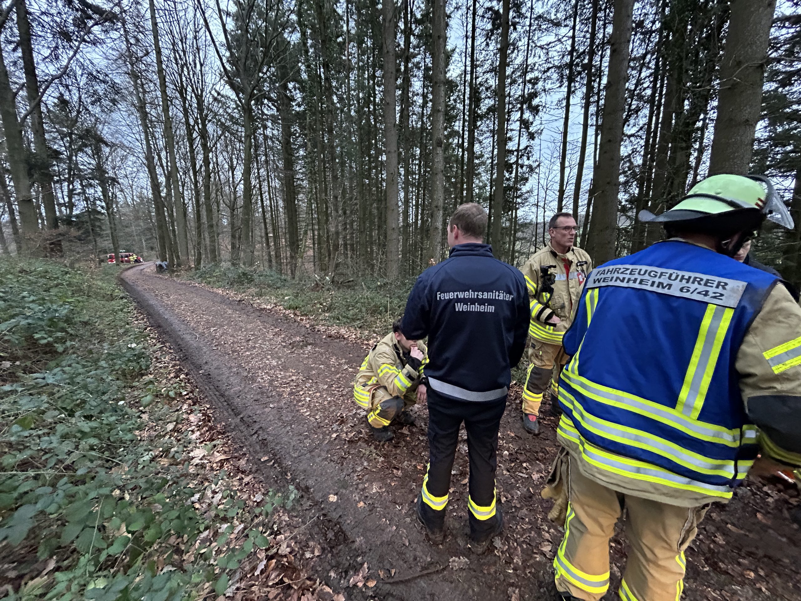 Am Neujahrstag stürzte eine Radfahrerin im Wald zwischen Rittenweier und Großsachsen. Da diese nicht mehr gehfähig war, musste neben dem Rettungsdienst auch die Weinheimer Feuerwehr anrücken.