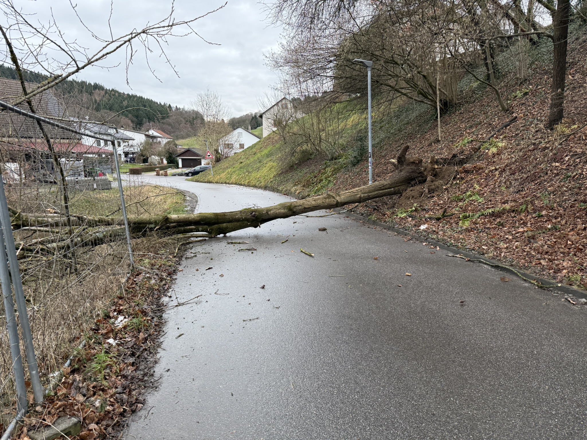 Nach Beendigung der Sägearbeiten wurde die Straße gereinigt und von Ästen befreit, um ein sicheres Befahren zu gewährleisten.