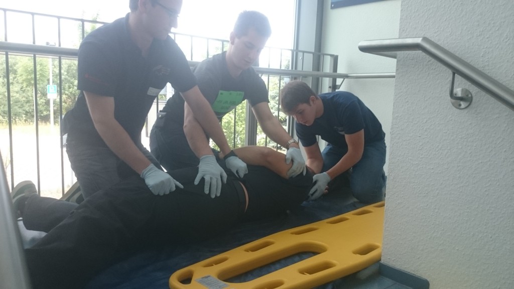 Nach einer theoretischen EinführuDSC_0233ng wurden Fallbeispiele von den Feuerwehrsanitätern in Teams abgearbeitet. Hier galt es zum Beispiel eine Person nach einem Treppensturz oder Verkehrsunfall zu versorgen. Auch die Rettung aus einem LKW mithilfe einer Rettungsplattform wurde geübt. Am Ende der Veranstaltung war man sich einig, dass man durch strukturiertes Vorgehen nach dem ABCDE-Schema sehr schnell alle wichtigen Parameter bei einem Notfall erfassen und Maßnahmen ergreifen kann.