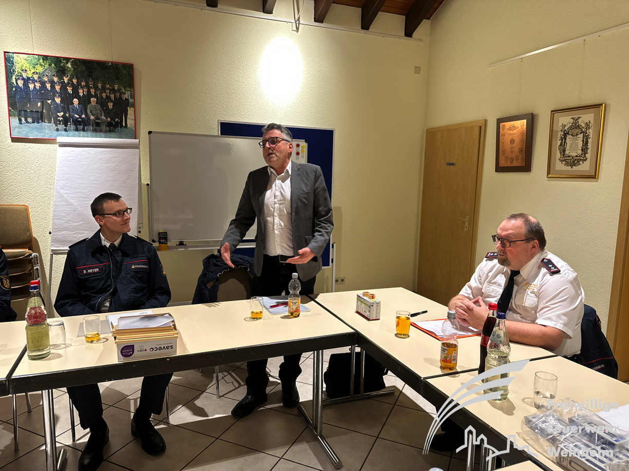Ortsvorsteher Karl Friedrich Kippenhan, selbst aktiver Feuerwehrmann sah die Probleme auch und hatte in seinem Grußwort, dass dabei, was die Mannschaft bei den genannten Einsätzen vermisst hatte. Nämlich Verständnis und ein Dankeschön der Bürgerschaft für die Mitglieder der Freiwilligen Feuerwehr, die viel Zeit und Engagement in ihr Hobby stecken. Tag und Nacht für andere im Dienst zu sein, ist in der heutigen Zeit, wo viele durch Beruf und Familie stark eingespannt sind, keine Selbstverständlichkeit. Diesem Dank schloss sich auch Erster Bürgermeister und Feuerwehrdezernent Dr. Torsten Fetzner. Auch er dankte der Mannschaft für ihren Einsatz und Übungsdienst. Die Feuerwehrabteilung ist eine wichtige Einrichtung für den Ort und ein kleines Kulturgut, um die Aktivitäten und das Leben nicht nur sicherer zu machen, sondern auch mit Veranstaltungen und Festivitäten zu bereichern.