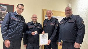 Bernd Meyer dankte dem Abteilungskommando für die gute, vertrauensvolle Zusammenarbeit und verabschiedete Sven Ballas als stellvertretenden Abteilungskommandant. Für ihn rückte Christof Schäfer nach. Im Anschluss ehrte und beförderte der Feuerwehrkommandant verdiente Feuerwehrangehörige. Hier erhielt Heinrich Weigod für 50 Jahre aktive Mitgliedschaft die höchste Ehrung des Abends.