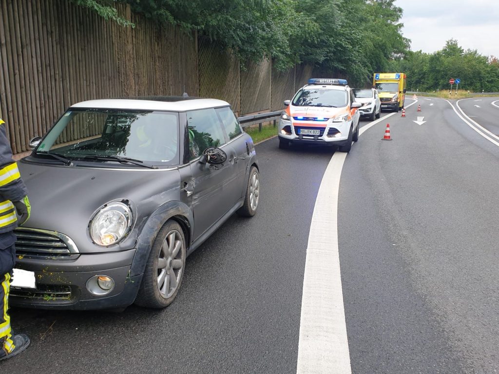 Weinheim. Zu einem Verkehrsunfall mit eingeklemmter Person wurden Feuerwehr, Rettungsdienst und Polizei auf die Bundesautobahn 5 in Fahrrichtung Hemsbach gegen 9 Uhr alarmiert. Aus bisher unbekannter Ursache verunfallte ein Mini an der Anschlussstelle Hemsbach. Die Feuerwehr sicherte die Einsatzstelle zwischen der Ausfahrt Hemsbach und der Hüttenfelder Straße ab. Vor Ort stellte sich heraus, dass sich die Insassen des Fahrzeugs selbstständig befreien konnten und nicht wie zunächst gemeldet eingeklemmt waren. Während sich der Rettungsdienst um die Erstversorgung der zwei leicht bis mittelschwer Verletzten kümmerte, stellte die Feuerwehr den Brandschutz sicher. Um eine weitere Brandgefahr auszuschließen wurde die Fahrzeugbatterie des verunfallten Pkw abgeklemmt. Nachdem die Polizei die Einsatzstelle übernommen hatte, konnte auch die Feuerwehr den Einsatz beenden.