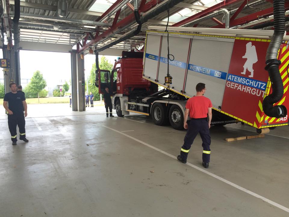 Trotz der Sommerferien und dem heißen Wetter in Baden Württemberg, traf sich die Feuerwehr Weinheim Abteilung Stadt auch im August zu einer Samstagsübung. Hier hatte Richard Meier eine Zirkelausbildung zum Thema Fahrzeugkunde ausgearbeitet.