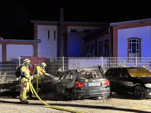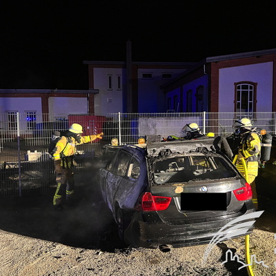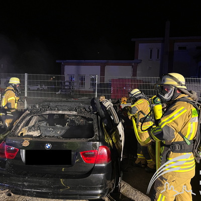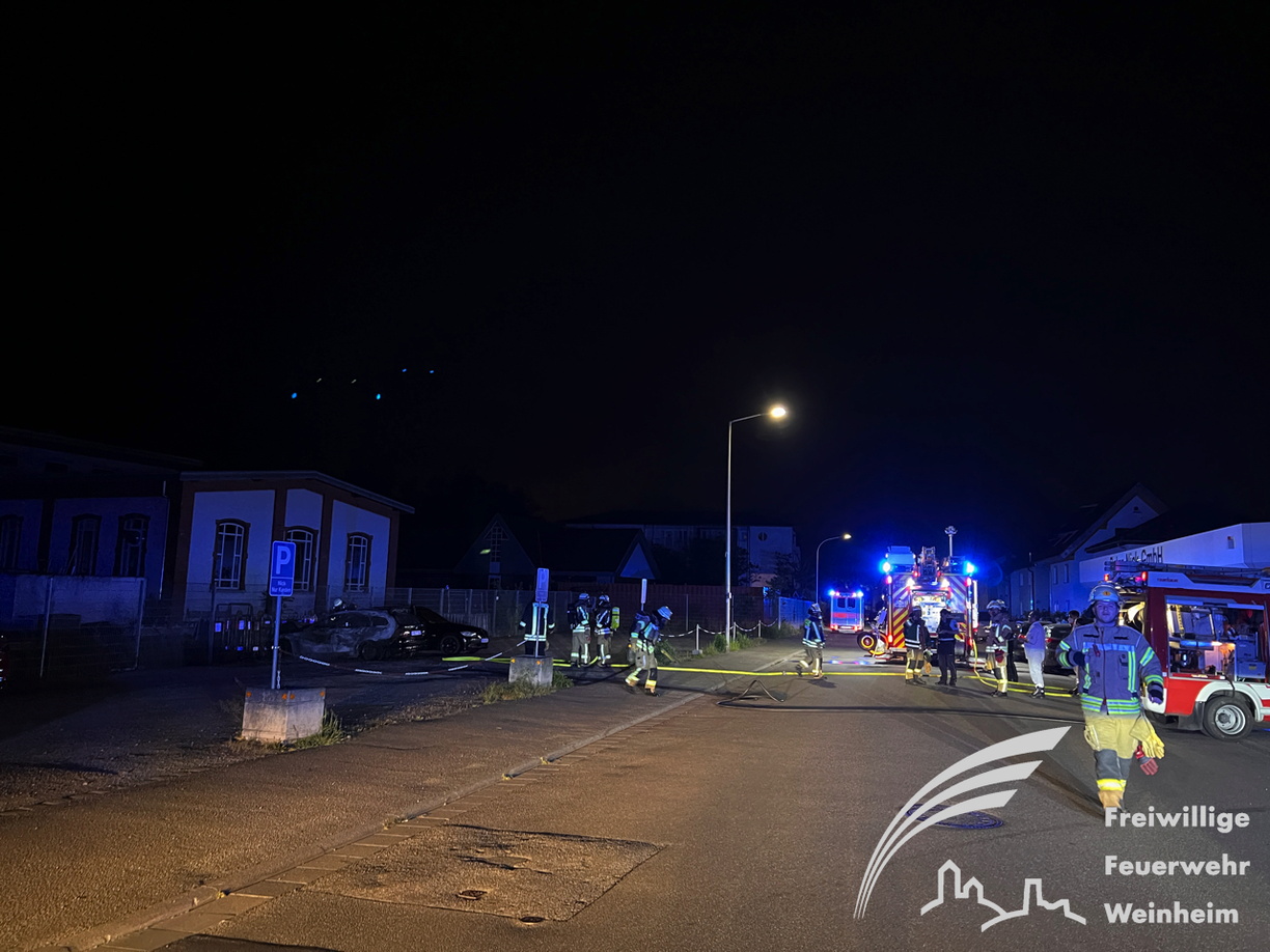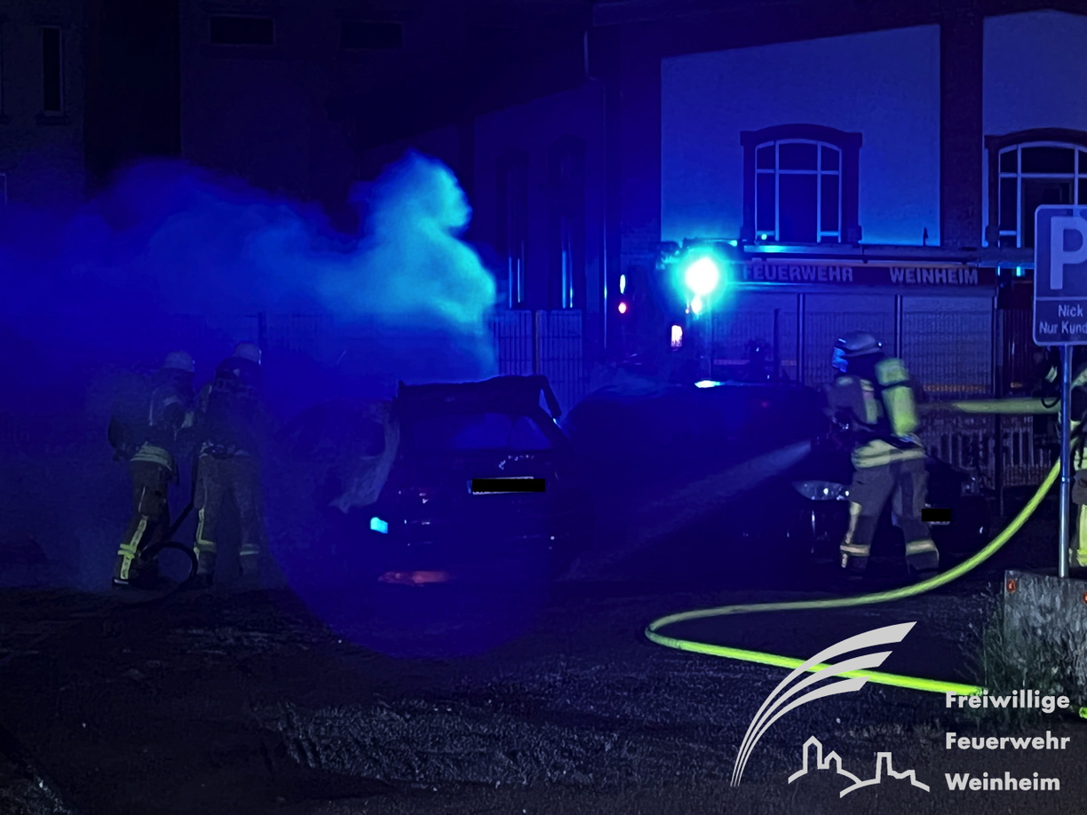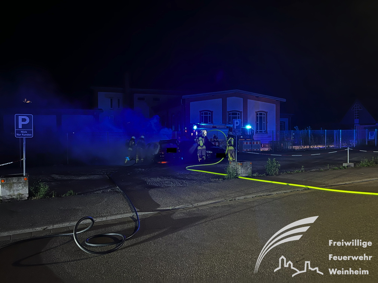 erwehr gegen die Ausbreitung des Brandes kämpfte. Trotz des schnellen Löscherfolgs brannte der BMW völlig aus und ein zweites Fahrzeug wurde durch die Wärmestrahlung stark beschädigt. Auch Materialien des angrenzenden Bauhofs wurden beschädigt. Nachdem das Feuer gelöscht war, wurden keiner Nachlöscharbeiten mit Unterstützung einer Wärmebildkamera durchgeführt, um letzte Glutnester zu finden. Der Rettungsdienst war ebenfalls zur Absicherung vor Ort. Verletzt wurde aber glücklicherweise niemand. Wie es zu dem Feuer kam, ist unklar und Gegenstand der Brandursachenermittlung, die das Polizeirevier Weinheim übernommen hat