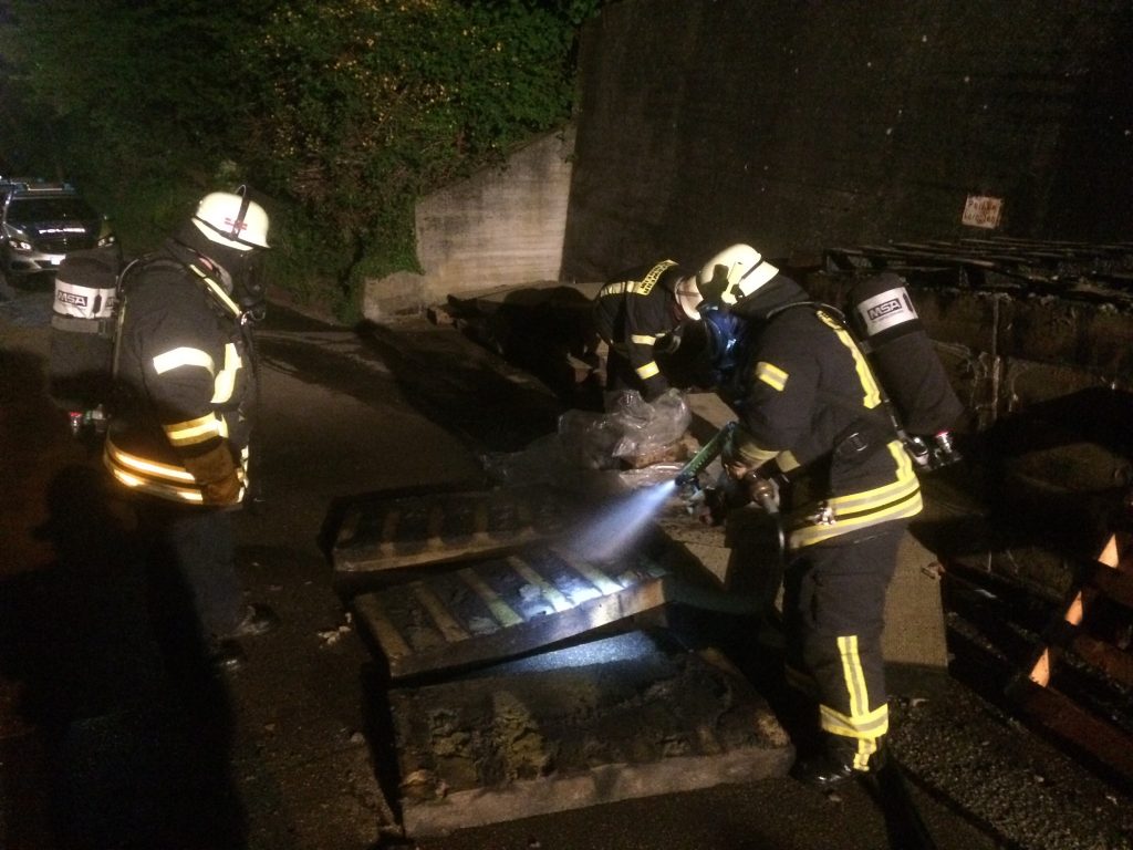 Anwohner meldeten in der Nacht auf Montag über den Notruf 112 brennende Paletten im Vogesenweg. Bei Ankunft der Freiwilligen Feuerwehr Weinheim Abteilung Stadt gegen 1 Uhr, versuchten die Anwohner bereits selbst das Feuer zu löschen und einzudämmen. Aus bisher ungeklärter Ursache waren mehrere Paletten auf denen Dämmmaterial lagert in Brand geraten. Mit dem kleinen, extra für schmale Wege beschafften Vorrauslöschfahrzeug, konnte die Einsatzstelle angefahren werden. Der Angriffstrupp löschte unter Atemschutz mit dem Schnellangriff des Fahrzeugs den Brand. Ein weiteres Löschfahrzeug ging kurz nach der Brunhildstraße in Bereitstellung um die Löschwasserversorgung zu sichern. Die Besatzung des Fahrzeugs unterstützte den Atemschutztrupp beim auseinanderräumen des Dämmmaterials. Dies war erforderlich um die Glutnester, die sich gebildet hatten abzulöschen. Nach einer halben Stunde konnte die Einsatzstelle nach einer abschließenden Brandnachschau mit der Wärmebildkamera an die Polizei Weinheim übergeben werden. Diese haben die Ermittlungen zur Brandursache aufgenommen. Da von einer Brandstiftung auszugehen ist, bittet die Polizei um sachdienliche Hinweise – entweder telefonisch 06201/10030 oder per Mail weinheim.prev@polizei.bwl.de