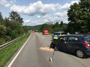 Weinheim. Kurz vor 13 Uhr wurde die Freiwillige Feuerwehr Weinheim Abteilung Stadt am Montagmittag auf die Westtangente (B38) zwischen Kreuzung Viernheimer Straße und Saukopftunnel gerufen. Aus bisher ungeklärter Ursache war eine Autofahrerin mit ihrem Opel Corsa in den Gegenverkehr geraten und mit einem LKW seitlich zusammengestoßen. Der LKW-Fahrer versuchte noch auszuweichen und konnte sein Fahrzeug im Straßengraben zum Stehen bringen. Der Corsa schleuderte weiter und blieb circa 150 Meter weiter auf der Gegenfahrspur liegen. Durch den Aufprall wurde der Dieseltank des LKW zerrissen, so das sich circa 300 Liter Kraftstoff auf der Westtangente ausbreiteten. Zunächst wurde gemeldet, dass die Fahrerin eingeklemmt sei. Bei Ankunft der Feuerwehr war die schwerverletzte Frau aber bereits aus dem Fahrzeug befreit und wurde durch den Rettungsdienst erstversorgt.