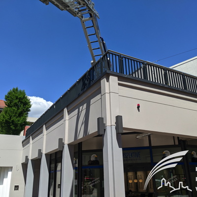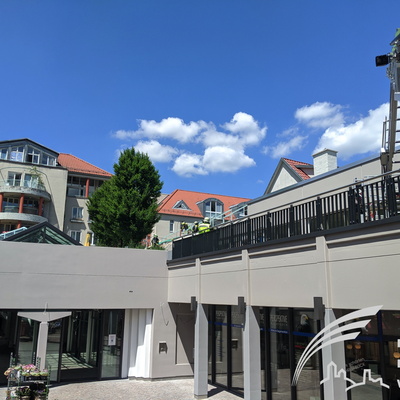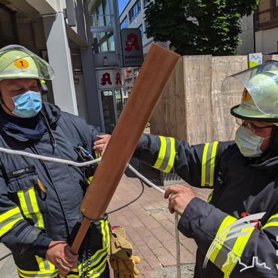Weinheim. Kurz nach 11 Uhr wurde die Feuerwehr Weinheim am Donnerstag in die Fußgängerzone zum Karlsberg Carré alarmiert. Dort war es auf einer Baustelle im 1. Obergeschoss zu einem Dehnfugenbrand gekommen. Handwerker hatten das Feuer bemerkt und bereits erste Löschversuche unternommen. Die Dehnfuge befand sich zwischen zwei Wänden, die sich von der Tiefgarage bis zum Dach zog. Dämmmaterial dazwischen schwelte und breitete sich über die Wandfläche weiter aus. Da das Feuer und der Brand nicht direkt sichtbar waren, gestaltet sich die Brandbekämpfung sehr schwierig. Das größte Problem war zunächst den Brandherd zu finden. Daher setzte die Feuerwehr eine Wärmebildkamera ein. Außerdem wurden Löcher gebohrt um in das Innere der Wand zu gelangen und Löschmaßnahmen durchzuführen. Da das Ausmaß des Brandes zunächst unklar war und mehrere Bereiche es Carrés kontrolliert werden mussten, wurde die Passage gesperrt. Auch die Fußgängerzone musste für die Einsatzfahrzeuge im Bereich der Reiterin gesperrt werden.