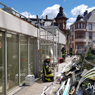 Der Brand einer Dehnfuge sorgte am Donnerstagmittag für einen mehrstündigen Einsatz der Weinheimer Feuerwehr in der Fußgängerzone.