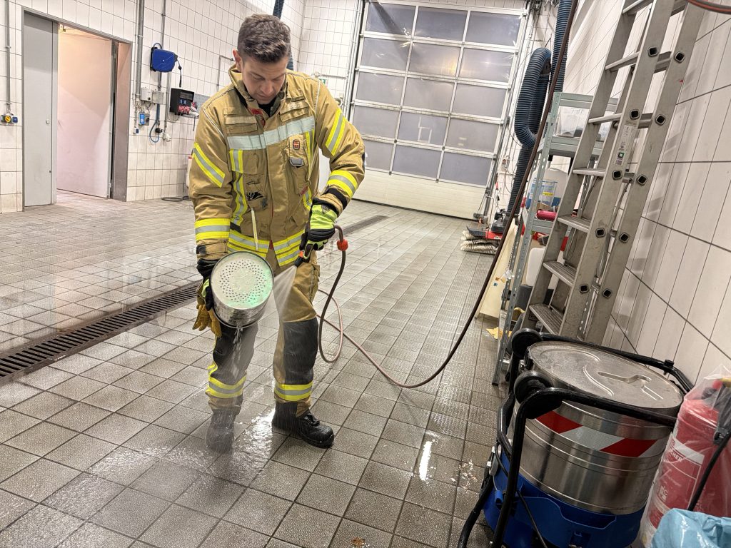 Im Feuerwehrzentrum erfolgte im Anschluss die gründliche Reinigung des eingesetzten Wassersaugers und des Zubehörs. Diese Nachbereitung ist fester Bestandteil jedes Feuerwehreinsatz und stellt sicher, dass die Geräte für den nächsten Alarm uneingeschränkt einsatzbereit zur Verfügung stehen.