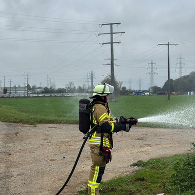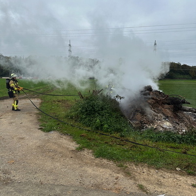 Feuerwehr löscht Unrath in der Bertleinssiedlung