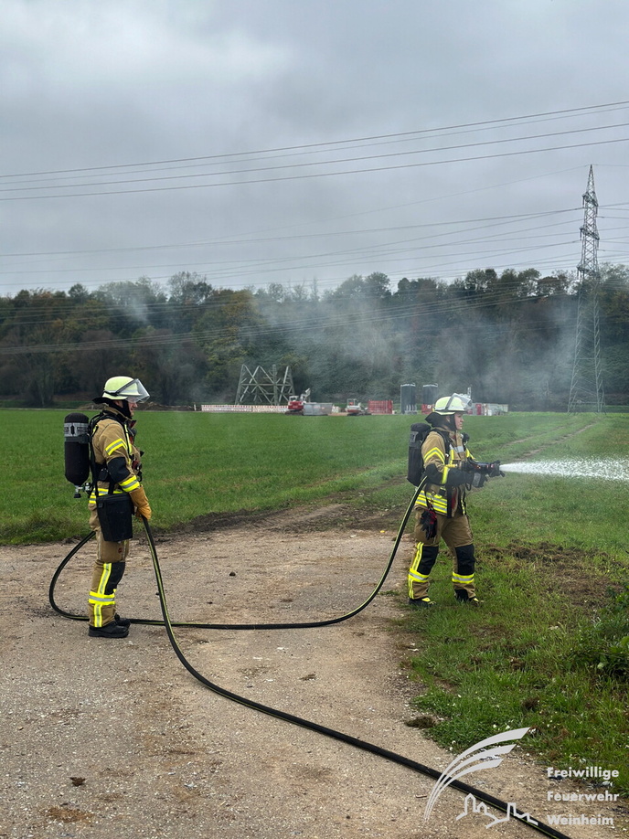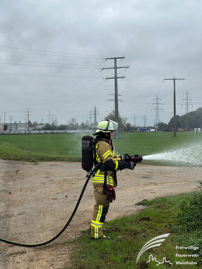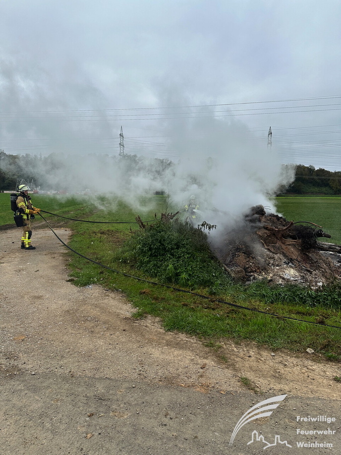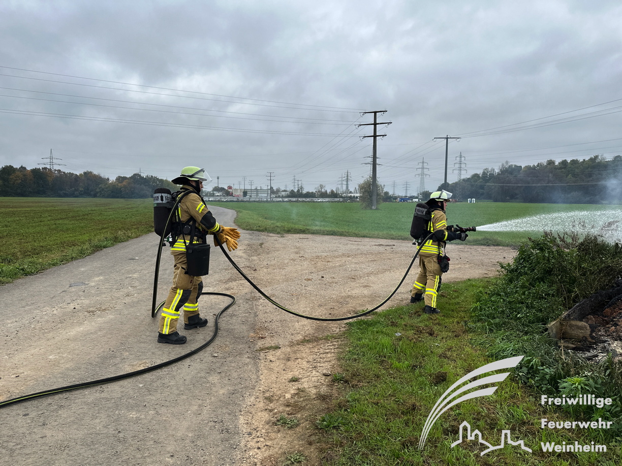 Im Feld im Bereich der Bertleinsbrücke brannte am Donnerstagmittag Unrath. Die Weinheimer Feuerwehr löschte das Feuer.