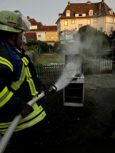 Weinheim. Am Samstagabend wurde die Weinheimer Feuerwehr kurz vor 19 Uhr zu einem Küchenbrand in die Humboldtstraße gerufen. In der Wohnung eines Zweiparteienhaus waren aus bisher ungeklärter Ursache Gegenstände in Brand geraten. Der Wohnungseigentümer unternahm bis zum Eintreffen der Feuerwehr noch Löschversuche und konnte sich rechtzeitig in Sicherheit bringen. Vorsorglich wurde er vom Rettungsdienst mit Verdacht auf eine Rauchvergiftung zur Untersuchung in ein Krankenhaus gebracht. Die anderen Bewohner des Hauses konnten sich ebenfalls unverletzt in Sicherheit bringen. Die Einsatzkräfte gingen unter Atemschutz mit dem ersten Rohr in die verrauchte Wohnung vor. Um eine weitere Rauchausbreitung zu verhindern, wurde ein mobiler Rauchvorhang an die Eingangstür gesetzt. Der Entstehungsbrand konnte schnell unter Kontrolle gebracht werden. Der Herd wurde vorsorglich ins Freie gebracht und dort weitere Nachlöscharbeiten durchgeführt. Zur Entrauchung des Gebäudes wurde ein Hochdrucklüfter eingesetzt. Der Sachschaden wird auf circa 15000 Euro geschätzt.