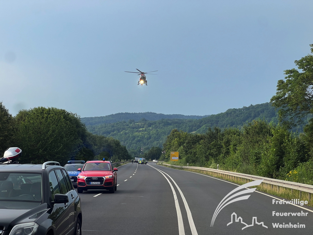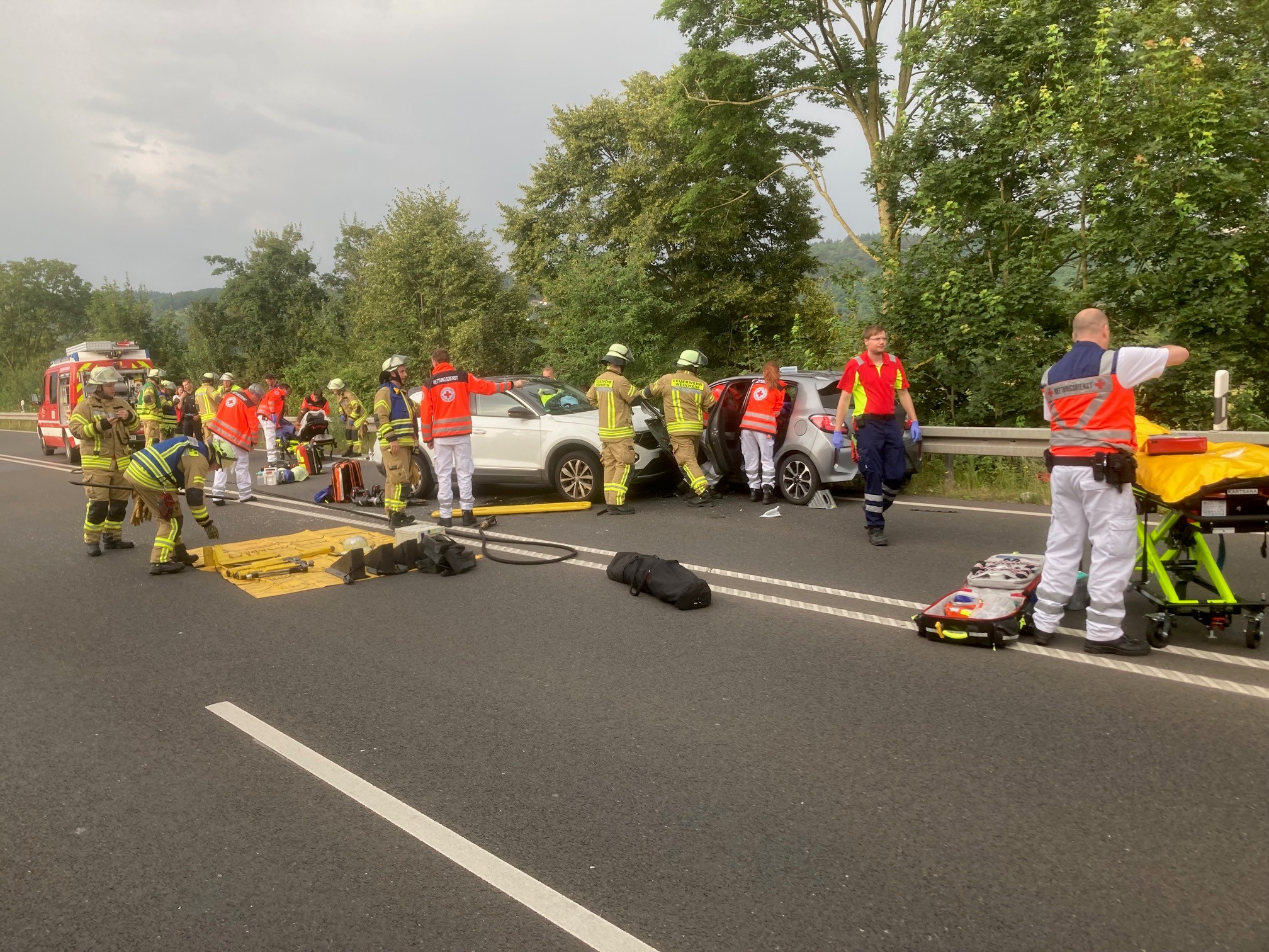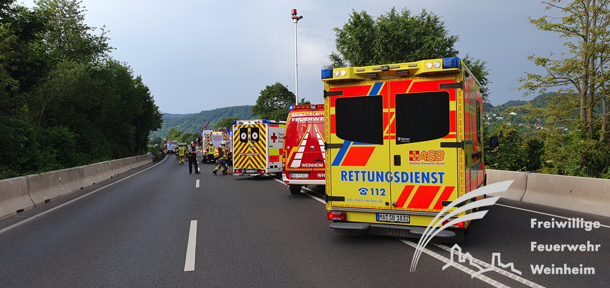 Weinheim. Am Mittwoch um kurz vor 19 Uhr kam es auf der Bundesstraße B38 bei Weinheim auf der Höhe des Industrieparks zu einem Zusammenstoß zweier Autos. Fünf Menschen wurden dabei teilweise schwer verletzt, darunter zwei Kinder. Nach Informationen der Polizei fuhr eine 35 Jahre alte Frau mit ihrem VW T-Roc die B38 Richtung Autobahnkreuz Weinheim entlang. Auf Höhe des Industrieparks kam sie aus bislang ungeklärter Ursache nach links in den Gegenverkehr. Dort stieß sie frontal mit einem Mitsubishi zusammen.