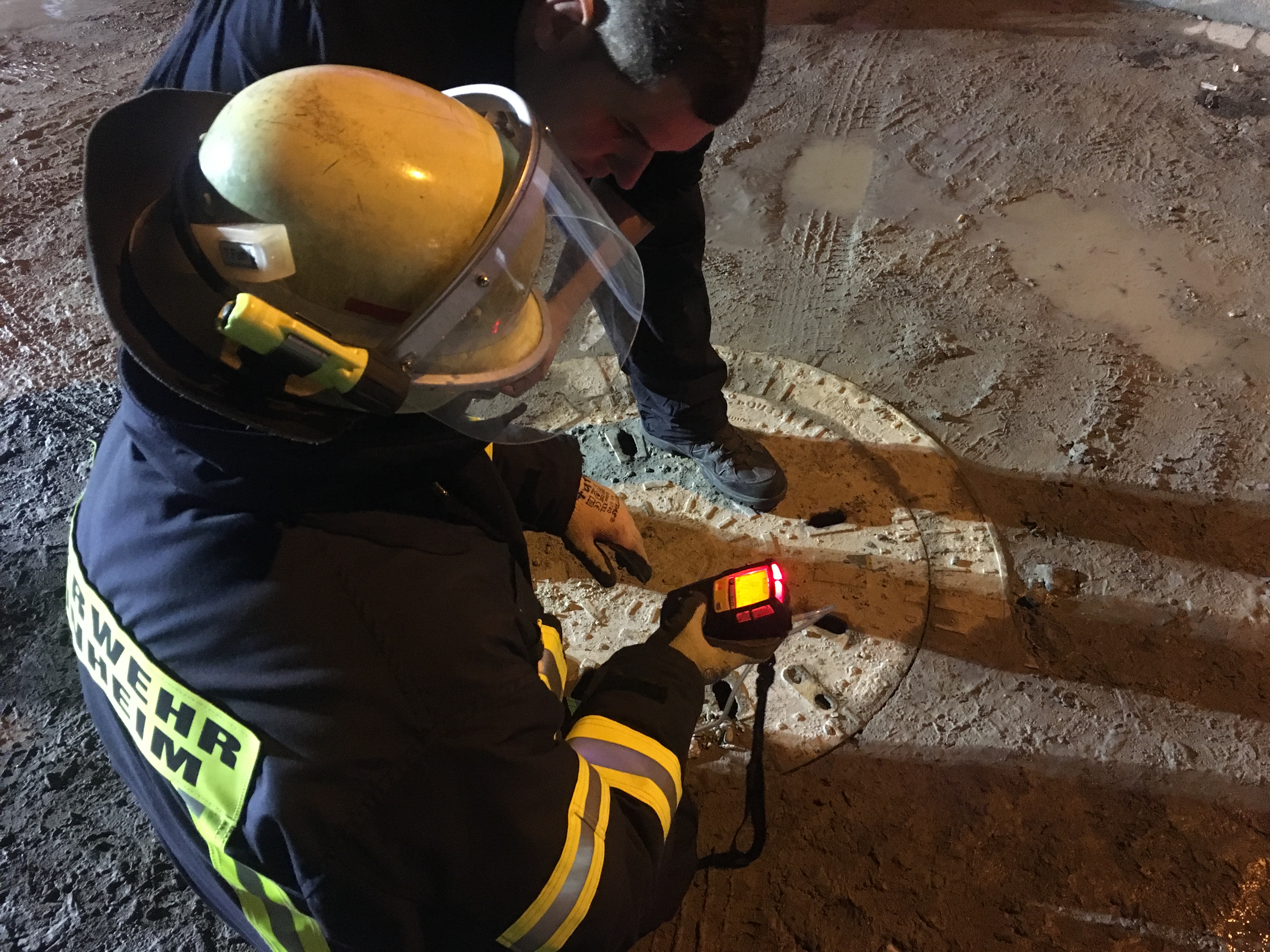 Um 18:24 Uhr ging am Samstagabend im Feuerwehrzentrum Weinheim der Alarm für einen Gasgeruch in der Müllheimer Talstraße ein. Die Freiwillige Feuerwehr Abteilung Stadt rückte darauf mit dem Rüstzug (Einsatzleitwagen, zwei Löschfahrzeuge und dem Rüstwagen) zur Einsatzstelle aus. Vor Ort warteten bereits Anwohner, die den Einsatzkräften den Bereich des Gasgeruchs zeigten. Dieser lag in dem Baustellenbereich zwischen Hauptstraße und Burggasse. Die Feuerwehr sperrte darauf mit Unterstützung der Polizei die Straße komplett für den Verkehr. Der Brandschutz wurde sichergestellt, die Stadtwerke Weinheim Abteilung Gas nachgefordert und ein Trupp mit Messgeräten ausgerüstet zur Erkundung des betroffenen Bereichs eingesetzt. Da die Messgeräte der Feuerwehr ein zündfähiges Gemisch anzeigten, wurde der Radius um den Geruchsbereich erhöht und die Anwohner gebeten vorsorglich Ihre Häuser zu verlassen. Parallel dazu nahmen auch die Stadtwerke Weinheim mit Messspürtrupps ihre Arbeit auf.