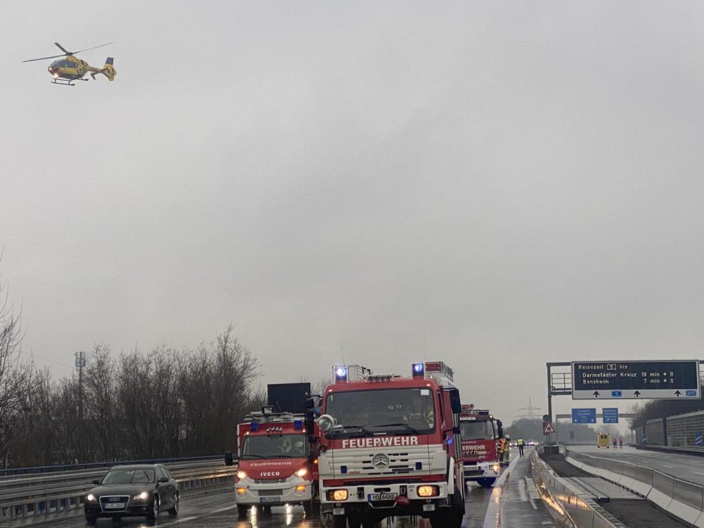 Geisterfahrer verursacht schweren Verkehrsunfall auf der A5 kurz vor dem Kreuz Weinheim