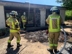 Am Sonntagvormittag musste die Abteilung Stadt dann erneut ausrücken. In der Cavaillonstraße wurde qualmender Bauschutt von einer Baustelle gemeldet. Vor Ort stellte sich heraus, dass dort unsachgemäß Grillkohle entsorgt wurde, die den Brand verursachte. Die Feuerwehr zog den Bauschutt auseinander und löschte das Feuer ab. Nach einer halben Stunde konnte auch dieser Einsatz beendet werden. Sachdienliche Hinweise zur Brandursache nimmt das Polizeirevier Weinheim unter 06201/10030 entgegen.