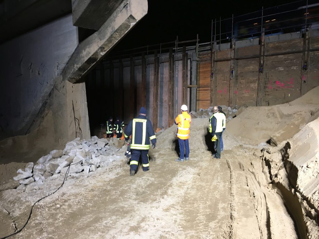 Ein nichtalltägliches Amtshilfegesuch der Autobahnpolizei sorgte für den nächsten Einsatz gegen 18 Uhr. Bei Sprengarbeiten an einer Baustelle auf der A659 zwischen Weinheim und Viernheim waren Gesteinsbrocken entdeckt worden, aus denen Drähte sichtbar heraushingen. Daher bestand der Verdacht, dass in dem Brocken eine nicht explodierte Sprengladung sein könnte. Spezialkräfte der Polizei analysierten und untersuchten den Fund vor Ort und planten die kontrollierte Sprengung. Die Feuerwehr leuchtet die Einsatzstelle weiträumig aus und stellt technisches Gerät zur Verfügung. Bei den Vorbereitungsarbeiten der Spezialisten konnte festgestellt werden, dass es sich um keinen Sprengstoff handelte. Daher konnte der Einsatz gegen 20:30 Uhr beendet werden und die Aufräumarbeiten beginnen.