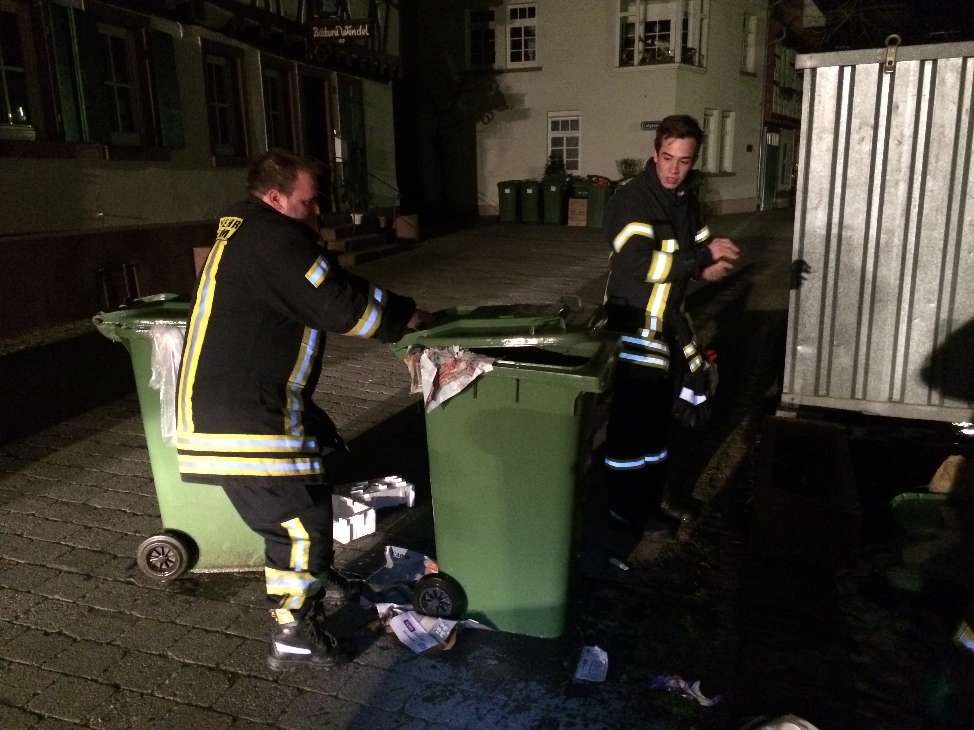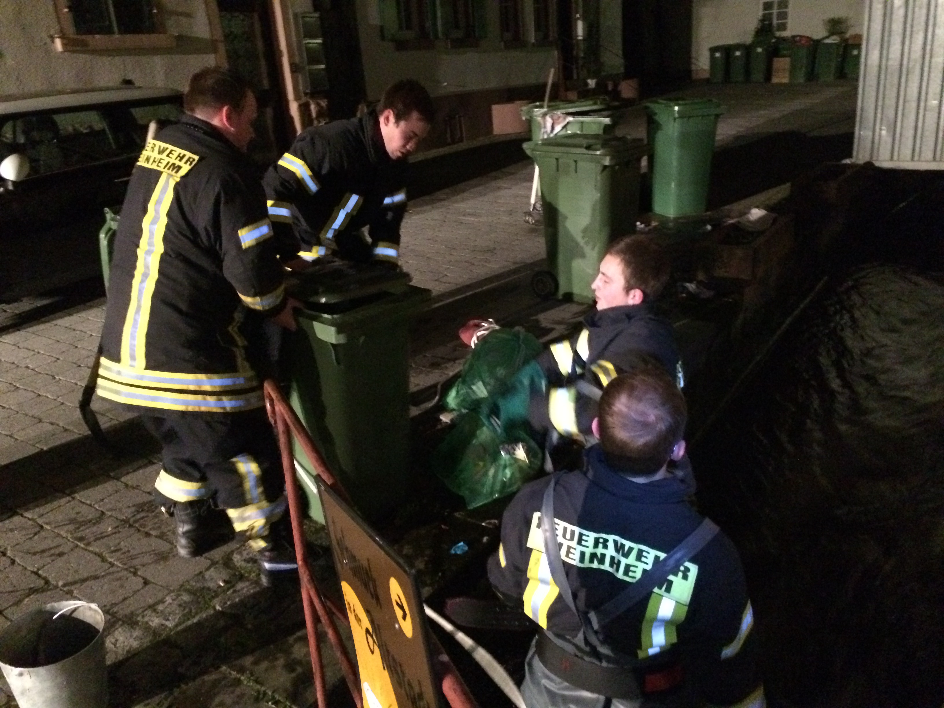 Eigentlich ist der Slogan der Freiwilligen Feuerwehr Weinheim „Unsere Freizeit für ihre Sicherheit“ – am späten Donnerstagabend hätte es aber eher heißen müssen unsere Freizeit für „missglückte Streiche“. Für die Anwohner des Gerberbachviertel investierten die Einsatzkräfte der Abteilung Stadt trotzdem gerne ihre Zeit und halfen den Anwohnern ihren Müll wieder zu bekommen.