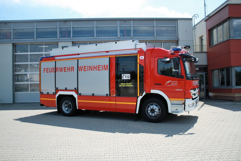 Die Vergabestelle der Stadt Weinheim schrieb daher vergangenes Jahr ein neues Fahrzeug aus – die Leistungsbeschreibung wurde von einem Arbeitskreis der Abteilung Stadt ausgearbeitet, das nun in diesem Juni geliefert werden konnte. Das neue Löschfahrzeug basiert auf einem Mercedes Benz Atego 1629 mit einem zulässigen Gesamtgewicht von 16 Tonnen und einer Leistung von 290 PS. Aufgebaut wurde das Fahrzeug vom österreichischen Spezialisten und Weltmarktführer für Feuerwehrfahrzeuge Rosenbauer.