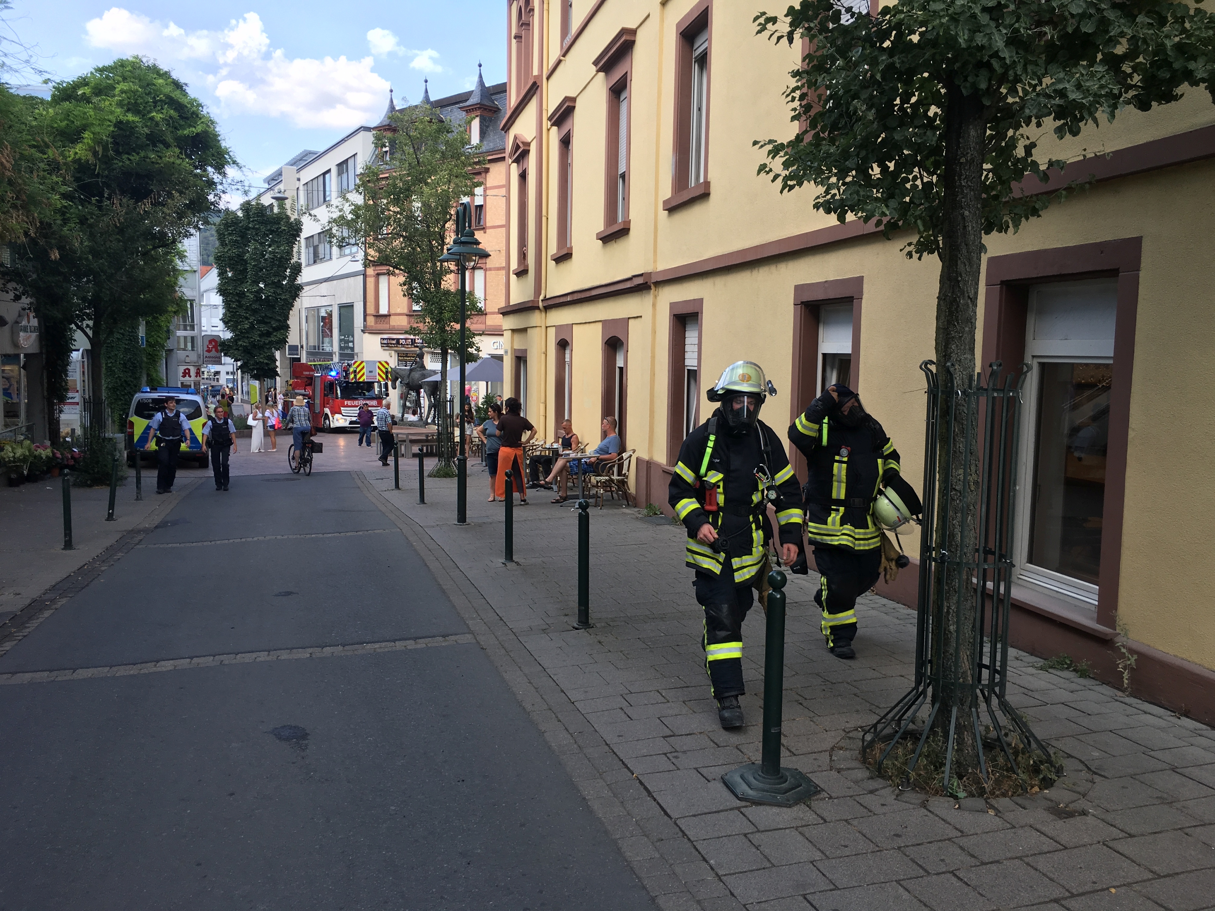 Fahrzeug war nicht betroffen, allerdings hatte sich das Feuer bereits auf die Fassade des Gebäudes ausgebreitet und für eine Verrauchung eines angrenzenden Cafés gesorgt. Ein Trupp unter Atemschutz ging mit einem Rohr zur Brandbekämpfung vor. Ein weiterer Trupp kontrollierte das Café und forderte die Gäste auf das Gebäude zu verlassen. Parallel dazu wurden auch die Wohnungen über dem Café kontrolliert. Bis zum Eintreffen der Feuerwehr hatten Anwohner und Passanten mit mehreren Feuerlöschern das Feuer in Schach halten können. Durch dieses beherzte Eingreifen konnte eine Brandausbreitung verhindert und das Feuer schnell gelöscht werden. Mit einem Lüfter wurde der Brandrauch aus dem Gebäude gedrückt. Nach einer abschließenden Brandnachschau mit einer Wärmebildkamera konnte die Einsatzstelle an die Polizei Weinheim zur Brandursachenermittlung übergeben werden.