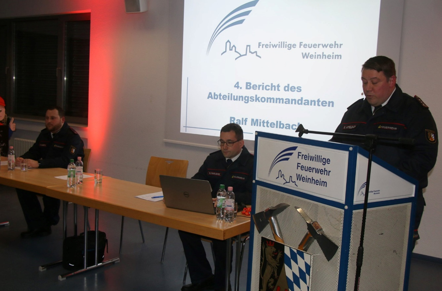 Mittelbach verhehlte nicht, dass er durch seine Funktion als stellvertretender Feuerwehrkommandant für ganz Weinheim gemeinsam mit Volker Jäger aufgrund der aktuellen Umstände viele Aufgaben übernehmen musste, was ihn in den letzten Monaten an seine Grenzen gebracht habe. Er entschuldigte sich dafür, dass er einiges nicht mehr in der gewohnten Qualität und Schnelligkeit abarbeiten konnte. „Aber ich hoffe, dass sich das Ganze bessern wird, wenn unser Kommandant Sven Lillig seine Schulzeit beendet hat und ab April vollumfänglich zur Verfügung steht.“