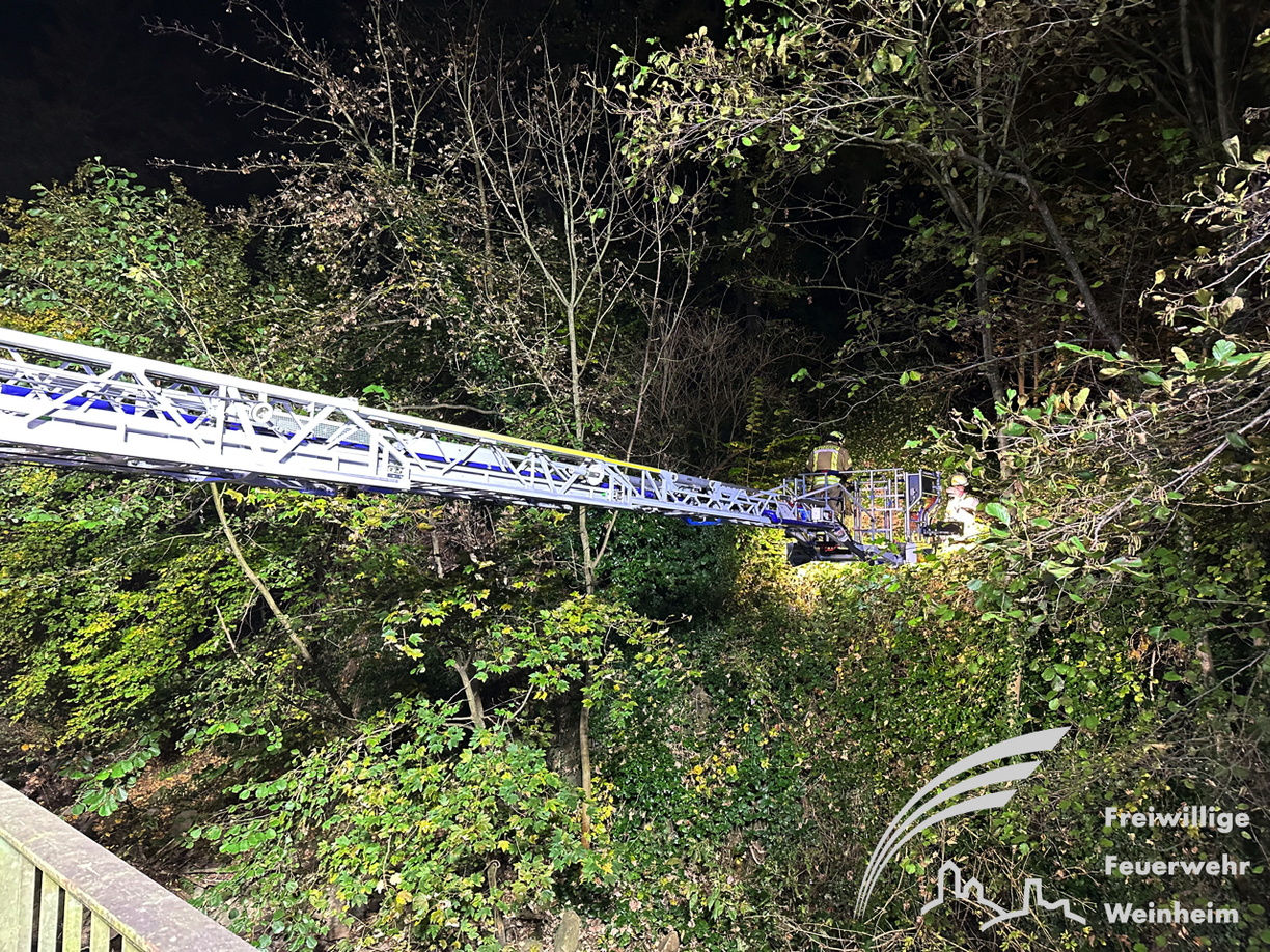 Ein Elternteil, dass die Kinder selbstständig anrufen konnten, war bereits an der Einsatzstelle eingetroffen und konnte die Feuerwehr einweisen. Die Einsatzkräfte konnten im Dunkeln die Kinder auf der anderen Seite am Hang des Weschnitz Ufers entdecken.
