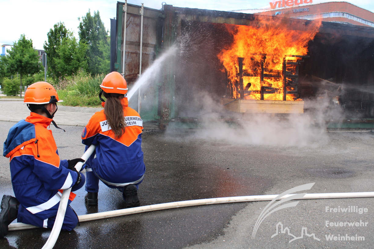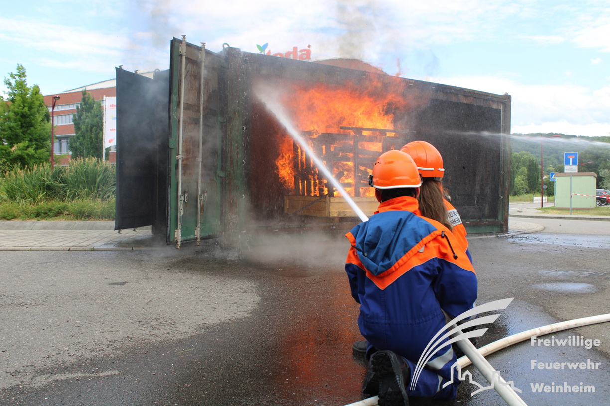 Weinheim. Vor dem großen Löschfahrzeug stellten sich die Jugendlichen auf. Alle waren konzentriert, immerhin loderten nur einige Meter weiter meterhoch die Flammen. Gruppenführerin Hannah Gärtner teilte gegenüber ihrer Mannschaft den Einsatzbefehl mit. Schon kurze Zeit später waren die Schläuche ausgerollt und die Brandbekämpfung begann. Beim Tag der offenen Tür der Freiwilligen Feuerwehr Weinheim Abteilung Stadt stellte die Jugendfeuerwehr ihr Können unter Beweis und erhielt hierfür reichlich Beifall. Groß und Klein schauten beim Aktionstag vorbei und informierten sich rund um die Feuerwehrarbeit. Für das leibliche Wohl war gesorgt und auch die Spielstationen fanden reichlich Resonanz.