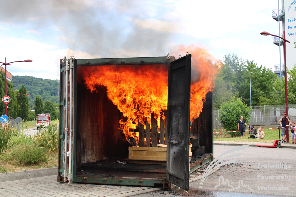 Erfolgreicher Tag der offenen Tür der Feuerwehr Weinheim: Buntes Programm lockt viele Besucher an / zwei Brandübungen vorgeführt.
