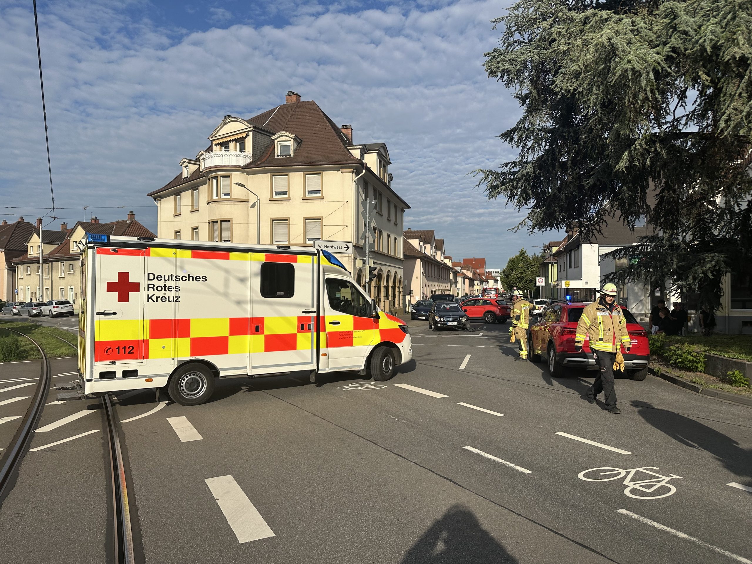 Die Feuerwehr Weinheim musste am Donnerstag gemeinsam mit der Polizei und dem Rettungsdienst zu einem Verkehrsunfall in der Mannheimer Straße ausrücken.