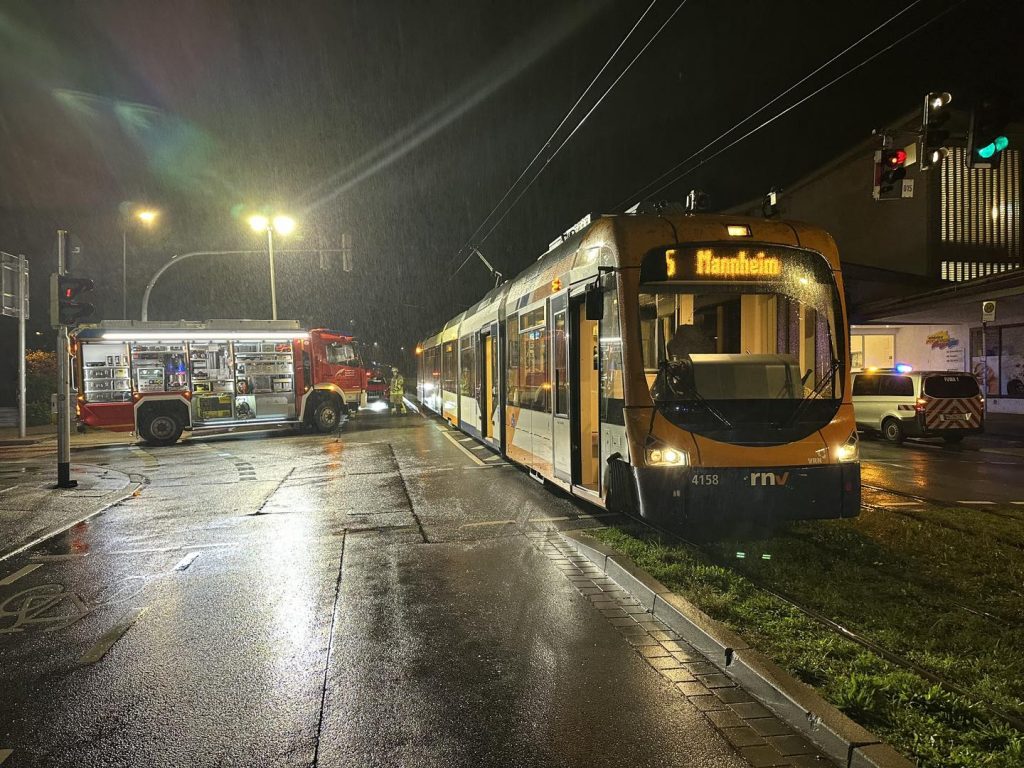 Verkehrsunfall mit Straßenbahn sorgt für Feuerwehreinsatz in der Mannheimer Straße
