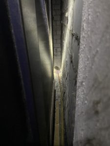 Zunächst versuchte sich die Feuerwehr einen größeren Zugang zu verschaffen. Dafür wurde eine Verblendung entfernt. Dadurch konnte man den Igel besser lokalisieren. Dieser hatte sich aus seinem natürlichen Schutzreflex zusammengerollt und kauerte am Ende des drei Meter langen Schachts. Schnell war klar, dass man hier mit schwerem Gerät nicht weiterkommt, da hier auch ein nicht unerheblicher Schaden entstanden wäre. Daher war der Erfindergeist der Einsatzkräfte gefragt.