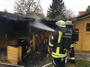 Anders sah es am späten Freitagnachmittag in der Fliederstraße aus. Mehrere Notrufe gingen bei der Leitstelle Rhein Neckar ein und meldeten eine starke Rauchentwicklung in dem Wohngebiet. Völlig zerstört wurde am Freitagabend eine Gartenhütte in der Fliederstraße. Aus bisher unbekannter Ursache war im Garten eines Wohnhauses eine Gartenhütte in Brand geraten. Das Feuer brach zunächst im vor der Hütte aus und breitet sich schnell auf das gesamte Dach aus. Durch die Hitze zersprangen auch die Fenster der Hütte, so dass sich das Feuer weiter ausbreiten konnte. Bis zum Eintreffen der Einsatzkräfte der Abteilung Stadt, hatten die Anwohner bereits mit einem Gartenschlauch das Feuer eindämmen können. Mit zwei Trupps unter Atemschutz wurde der Brand unter Kontrolle gebracht. Nach einer abschließenden Brandnachschau mit der Wärmebildkamera wurde die Einsatzstelle an die Polizei Weinheim für die Ursachenermittlung übergeben.