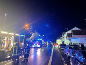 Weinheim. Flammen und Rauch aus einem Wohn- und Geschäftshaus in der Bergstraße sorgten am späten Mittwochabend für einen Feuerwehreinsatz. Über den Notruf 112 meldetet mehrere Anrufer die Rauchentwicklung und den Flammenschlag. Daher rückte die Freiwillige Feuerwehr Weinheim mit den Abteilungen Stadt und Sulzbach zur Brandbekämpfung an. Auch der Rettungsdienst und die Polizei fuhren die Einsatzstelle an. Vor Ort hatte der Betreiber der Geschäftsräume bereits erste Löschversuche mit einem Feuerlöscher unternommen. Dies hatte allerdings nicht den gewünschten Löscherfolg. Bis zum Eintreffen der Feuerwehr, konnten alle Bewohner das Wohn- und Geschäftshaus unverletzt verlassen. Während ein Trupp unter Atemschutz die Löschmaßnahmen im Erdgeschoss an einer Lüftungsanlage übernahm, machte sich ein weiterer Trupp unter Atemschutz fertig, damit dieser über die Drehleiter das Feuer im Dachbereich, dass sich rund um den Karmin ausgebreitet hat zu löschen.