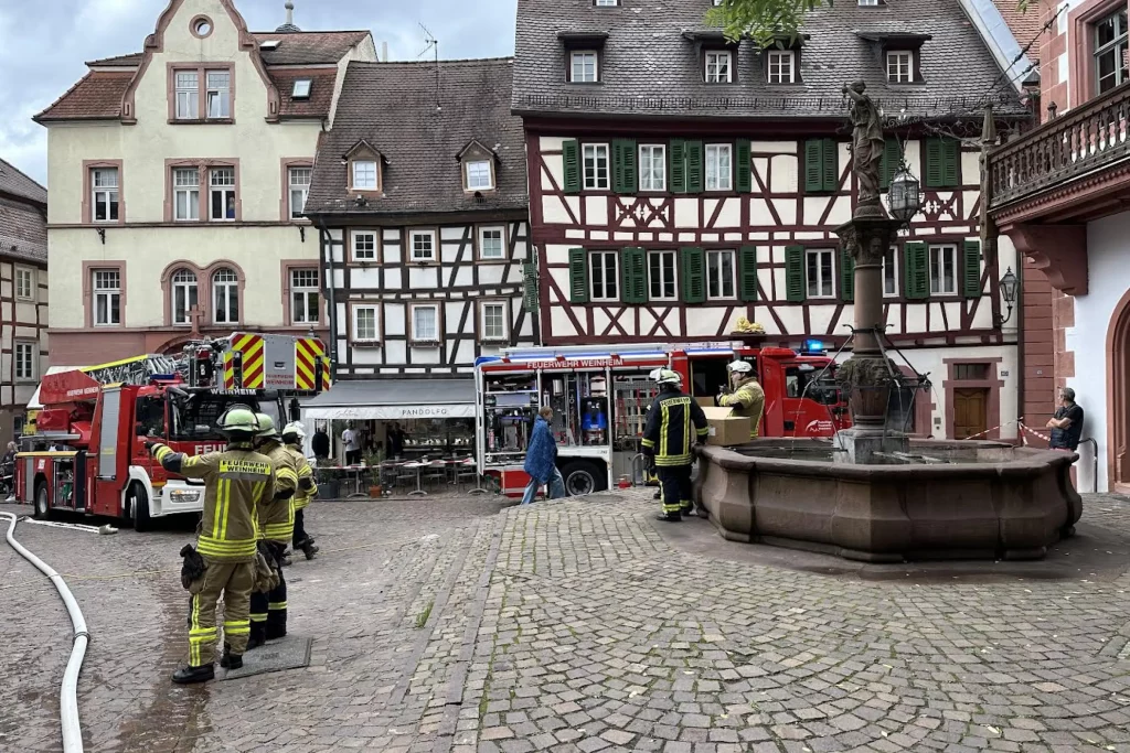 Weinheim. Am Sonntag kam es aus ungeklärter Ursache zu einem Brand. Das Personal reagierte sehr schnell und evakuierte den Gastraum. Kurz nach 14 kam es in einem Café am Weinheimer Marktplatz aus ungeklärter Ursache zu einem Brand in einem Elektroverteilerkasten. Das Personal reagierte sehr schnell und evakuierte den Gastraum und unternahm erste Löschversuche mit einem Feuerlöscher. Bei Eintreffen der Feuerwehr war der Brand bereits fast aus, der Gastraum sowie das Treppenhaus verraucht. Der Brand wurde gelöscht und die Wohnungen im Gebäude kontrolliert. Dabei wurden zwei Personen und zwei Katzen ins Freie gebracht. Das Gebäude wurde belüftet und von den Stadtwerken kontrolliert. Nachdem kein Rauch mehr im Gebäude war, konnte die Einsatzstelle an die Polizei übergeben werden. Ein Angestellter wurde vorsorglich ins Krankenhaus verbracht, alle anderen Angestellten und die Bewohner konnten nach einer kurzen Untersuchung durch den Rettungsdienst vor Ort verbleiben. Die Katzen wurden einer Nachbarin zur Betreuung übergeben, bis die Besitzerin diese übernehmen konnte. Durch das schnelle Handeln der Angestellten konnte Schlimmeres verhindert werden.