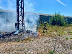 Weinheim. Zu einem Flächenbrand musste die Feuerwehr am Donnerstagmittag ausrücken. Hinter dem Supermarkt an der Bundesstraße 3 brannte der Grünstreifen vor den Gleisen der Deutschen Bundesbahn. Aufgrund der Rauchentwicklung gingen mehrere Notrufe bei der Leitstelle Rhein-Neckar ein, so dass die Einsatzstelle auch schnell lokalisiert werden konnte. Mit einem Rohr konnten die Einsatzkräfte die Ausbreitung des Feuers verhindern. Die Feuerwehr, die mit zwei Löschfahrzeugen vor Ort war, konnten die circa 50m² Brandfläche schnell löschen. Während dem Einsatzverlauf meldeten sich auch Augenzeugen und konnten die Brandursache aufklären. Ein Vogel war in die Stromleitung für die Bahnanlage geflogen, wodurch dieser einen Stromschlag erlitt und brennend abstürzte. Durch die sehr trockene Grünfläche konnte sich der Brand schnell ausbreiten. Der Vogel wurde von der Feuerwehr zwar gefunden, allerdings kam für ihn jede Hilfe zu spät. Da auch ein Elektroverteiler des Strommast brandbeaufschlagt war, wurde vorsorglich der Notfallmanager der Bahn nachgefordert. Nach einer Stunde konnte der Einsatz beendet und die Einsatzstelle an die Polizei sowie die Deutsche Bahn übergeben werden.