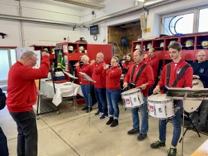 Die Faszination in Rot wurde musikalisch vom Spielmannszug der Abteilung Sulzbach mit Unterstützung des Spielmannszugs der Feuerwehr Laudenbach unter der Leitung von Stabsführer Rudi Neumann abgerundet. Für den Spielmannszug war dies auch der erste öffentliche Auftritt seit 2 Jahren. Auch die Spielleute hoffen, dass das nicht der letzte Auftritt war und viele weitere folgen. Einen Termin wissen die Spielleute heute schon sicher. Das wird der 15. Oktober 2022 sein, wenn die Feuerwehrabteilung Sulzbach hofft, wieder zum Feuerwehrball einladen zu können. An diesem Tag im Herbst wird dann auch am Vormittag ab 10 Uhr die jährliche Feuerlöscherprüfung des Sulzbacher Feuerwehrfördervereins angeboten.