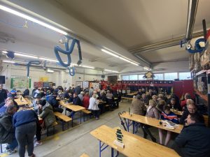 Dasselbe galt auch für das umfangreiche Kuchenbuffet, das die Angehörigen der Feuerwehrabteilung und des Feuerwehrfördervereins mit einer Auswahlmöglichkeit von 53 Torten und Kuchen im Lehrsaal ihren Besuchern angeboten hatten. Für die kleinen Gäste hatte die Jugendfeuerwehr und die Kinderfeuerwehr eine Spielstraße mit Waffelstand aufgebaut, bei der das Brandhaus, das mit einem Feuerwehrschlauch gelöscht werden musste, das Highlight des Tages war.