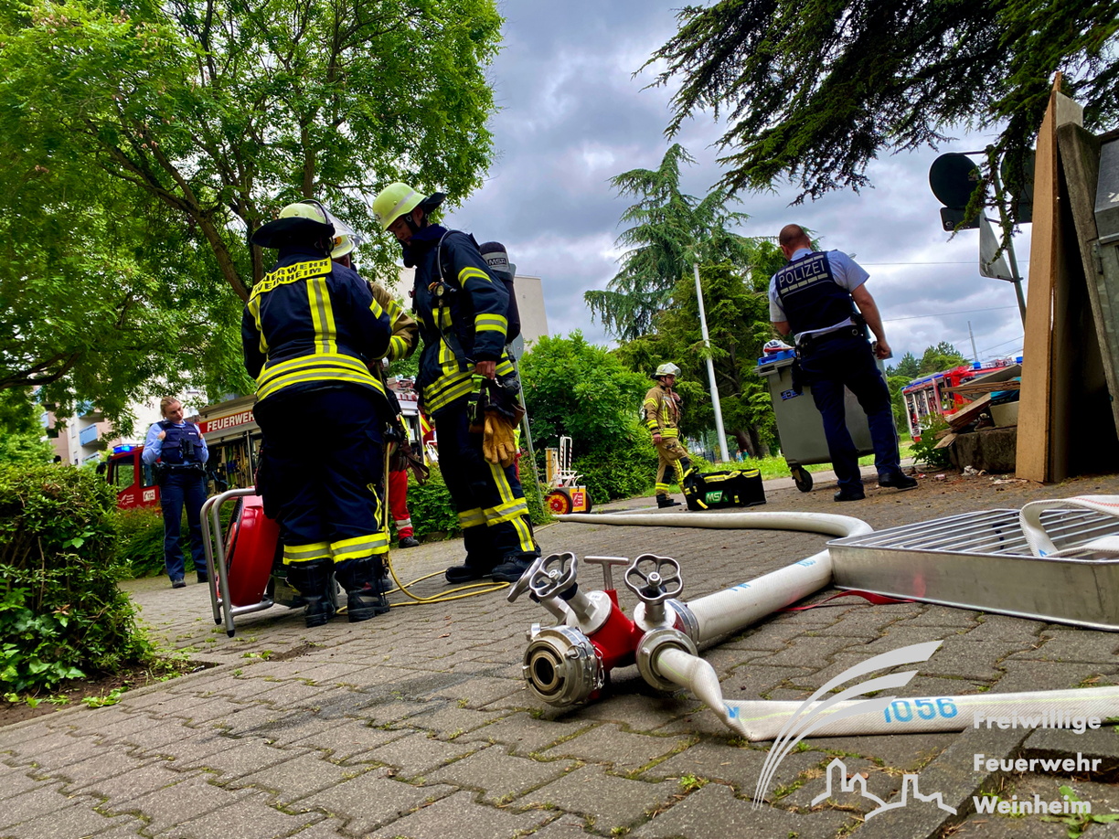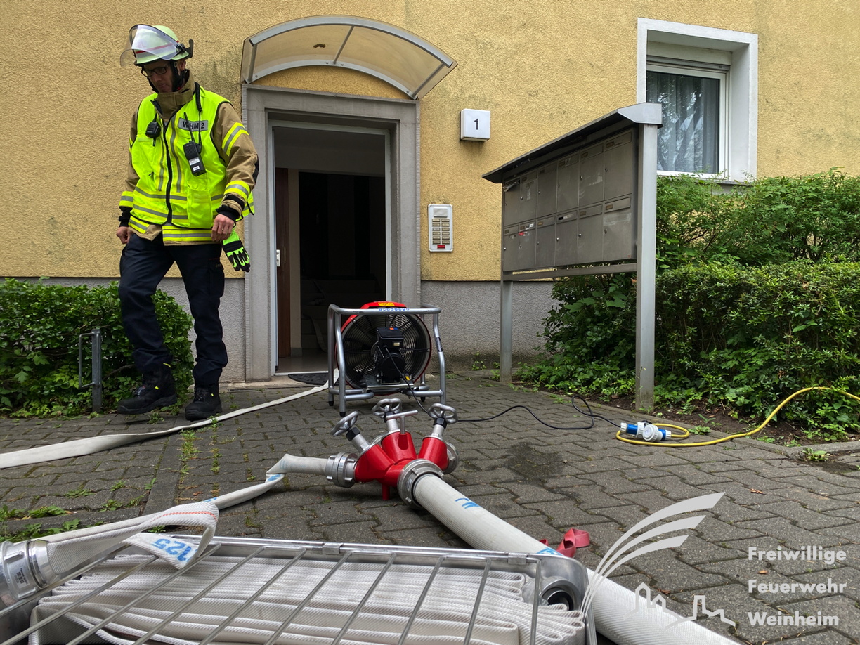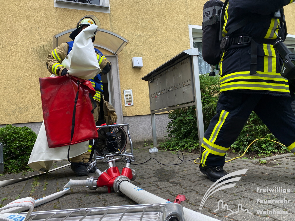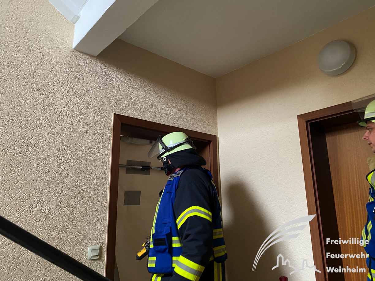 Weinheim. Mehrere Rauchwarnmelder in einem Mehrfamilienhaus in der Klaussingstraße lösten Alarm aus und machten die Nachbarn aufmerksam. Diese alarmierten die Feuerwehr. Vor Ort konnte neben dem Warnton auch eine leichte Verrauchung aus einem Fenster wahrgenommen werden, sodass sich die Einsatzkräfte gewaltsam Zutritt zur Wohnung verschafften. Da diese leicht verraucht war, wurde ein mobiler Rauchvorhang gesetzt, um das Treppenhaus rauchfrei zu halten. Parallel dazu wurde ein Einsatz mit Bereitstellung aufgebaut und die Drehleiter positioniert. Während ein Trupp mit dem ersten Rohr unter Atemschutz zur Brandbekämpfung vorging, machte sich ein Rettungstrupp fertig und der Bereitstellungsplatz am Verteiler wurde mit Geräten vervollständigt. Es stellte sich heraus, dass es zu einem Kleinbrand auf dem Herd gekommen war. Dieser wurde abgelöscht und die verrauchte Wohnung im Abschluss mit einem Lüfter der Feuerwehr vom Rauch befreit. Nach einer halben Stunde konnte der Einsatz beendet werden.