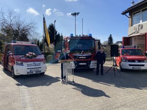 Weinheim. Bereits im Frühjahr 2021 erhielt die Freiwillige Feuerwehr Weinheim Abteilung Sulzbach einen neuen Mannschaftstransportwagen und im Dezember letzten Jahres dann auch ein neues Löschgruppenfahrzeug. Aufgrund der Coronaschutzmaßnahmen für die Feuerwehr, war es bisher nicht möglich die Fahrzeuge offiziell zur übergeben, was nun in einer kleinen Feierstunde nachgeholt wurde.