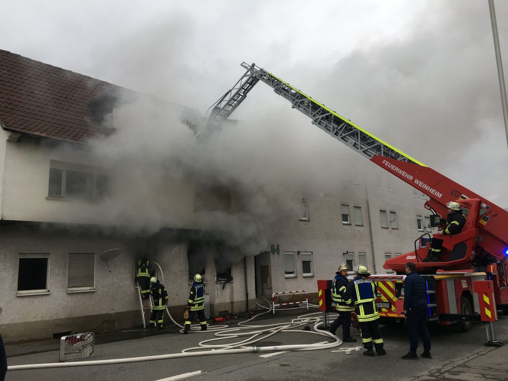 Insgesamt konnten 4 Personen aus dem Gebäude durch die Feuerwehr gerettet werden. Der Rettungsdienst war mit einem Großaufgebot von Einsatzkräften vor Ort und betreute die geretteten Personen. Eine Person musste mit Verdacht auf eine Rauchvergiftung zur weiteren Behandlung in ein Krankenhaus gebracht werden. Nach einer halben Stunde hatte die Weinheimer Feuerwehr den Brand unter Kontrolle. Auf dem Parkplatz der Firma Freudenberg wurde ein Bereitstellungsraum eingerichtet und der Abrollbehälter Atemschutz-Gefahrgut in den Einsatz gebracht. Mit diesem Abrollbehälter wurde der Nachschub mit Atemschutzgeräten sichergestellt. Mit Lüftern wurde der Brandrauch aus dem Gebäude gedrückt.