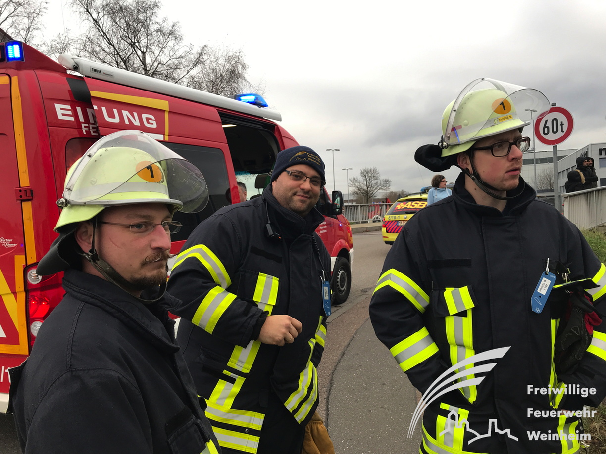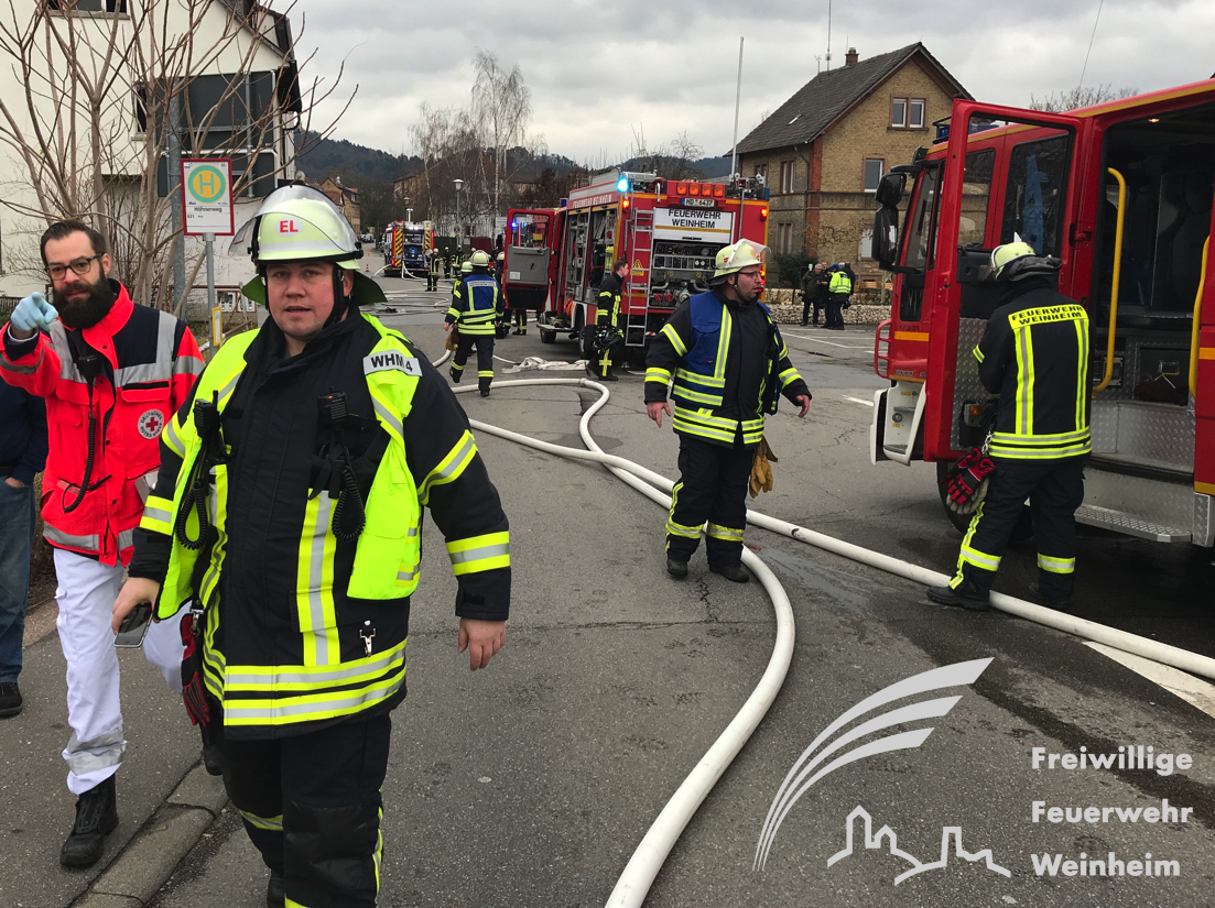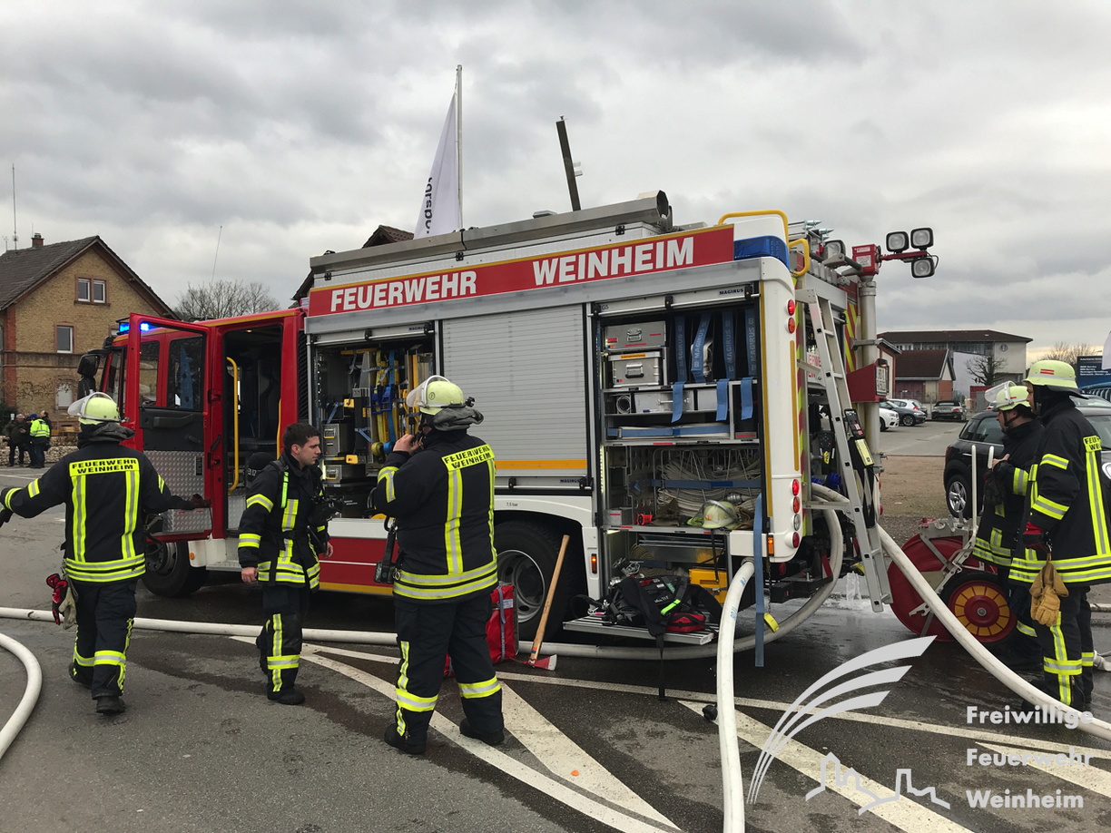 Einsatzkräften vor Ort und betreute die geretteten Personen. Eine Person musste mit Verdacht auf eine Rauchvergiftung zur weiteren Behandlung in ein Krankenhaus gebracht werden. Nach einer halben Stunde hatte die Weinheimer Feuerwehr den Brand unter Kontrolle. Auf dem Parkplatz der Firma Freudenberg wurde ein Bereitstellungsraum eingerichtet und der Abrollbehälter Atemschutz-Gefahrgut in den Einsatz gebracht. Mit diesem Abrollbehälter wurde der Nachschub mit Atemschutzgeräten sichergestellt. Mit Lüftern wurde der Brandrauch aus dem Gebäude gedrückt.