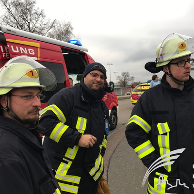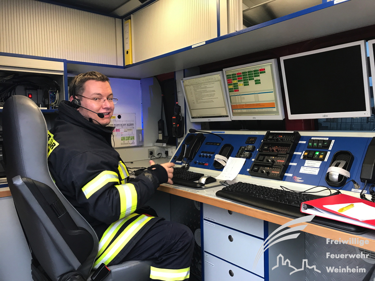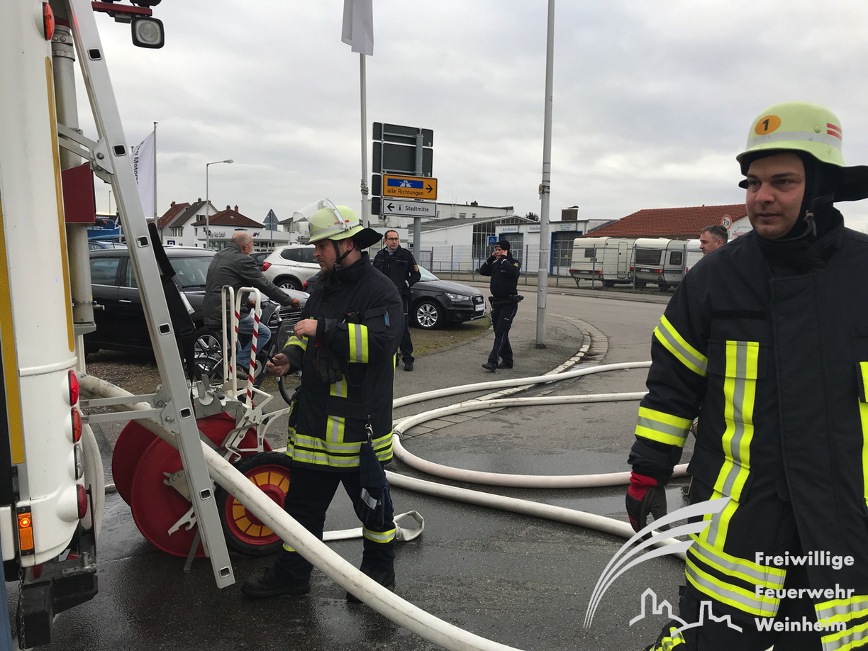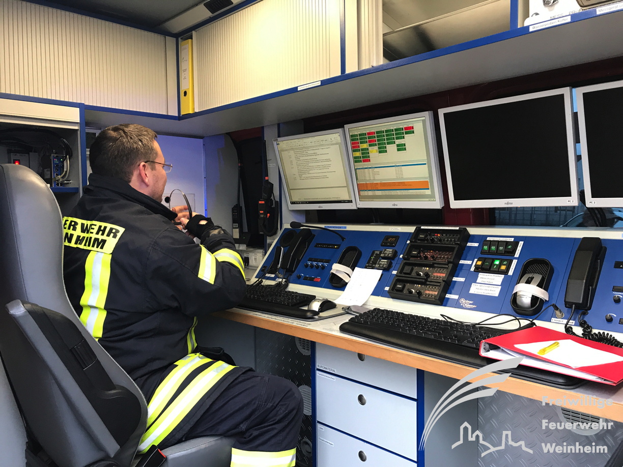 Einsatzkräften vor Ort und betreute die geretteten Personen. Eine Person musste mit Verdacht auf eine Rauchvergiftung zur weiteren Behandlung in ein Krankenhaus gebracht werden. Nach einer halben Stunde hatte die Weinheimer Feuerwehr den Brand unter Kontrolle. Auf dem Parkplatz der Firma Freudenberg wurde ein Bereitstellungsraum eingerichtet und der Abrollbehälter Atemschutz-Gefahrgut in den Einsatz gebracht. Mit diesem Abrollbehälter wurde der Nachschub mit Atemschutzgeräten sichergestellt. Mit Lüftern wurde der Brandrauch aus dem Gebäude gedrückt.