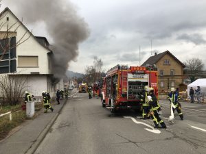 Bei Ankunft der Feuerwehr war bereits eine massive Rauchentwicklung sichtbar. Ein Zimmer im Erdgeschoss brannte in voller Ausdehnung und Flammen schlugen aus den Fenstern. Da mehrere Personen im Gebäude vermisst wurden, setzte die Wehr drei Trupps unter Atemschutz zur Menschenrettung ein. Ein weiterer Trupp ging zur Brandbekämpfung in die Brandwohnung vor und löschte mit einem Rohr. Parallel dazu wurde noch ein weiterer Trupp eingesetzt der von außen mit den Löscharbeiten begann. Neben der Personensuche durch Trupps im Inneren des Gebäudes wurde von außen zusätzlich eine Drehleiter eingesetzt. Zur Unterstützung der Abteilung Stadt wurde die Abteilung Sulzbach alarmiert. Diese unterstützte die Löscharbeiten mit zwei weiteren Löschfahrzeugen. Über die Rückseite des Gebäudes wurden Steckleitern in Stellung gebracht um auch dort die Wohnungen von außen zu kontrollieren und mögliche Rettungswege zur Verfügung zu stellen.