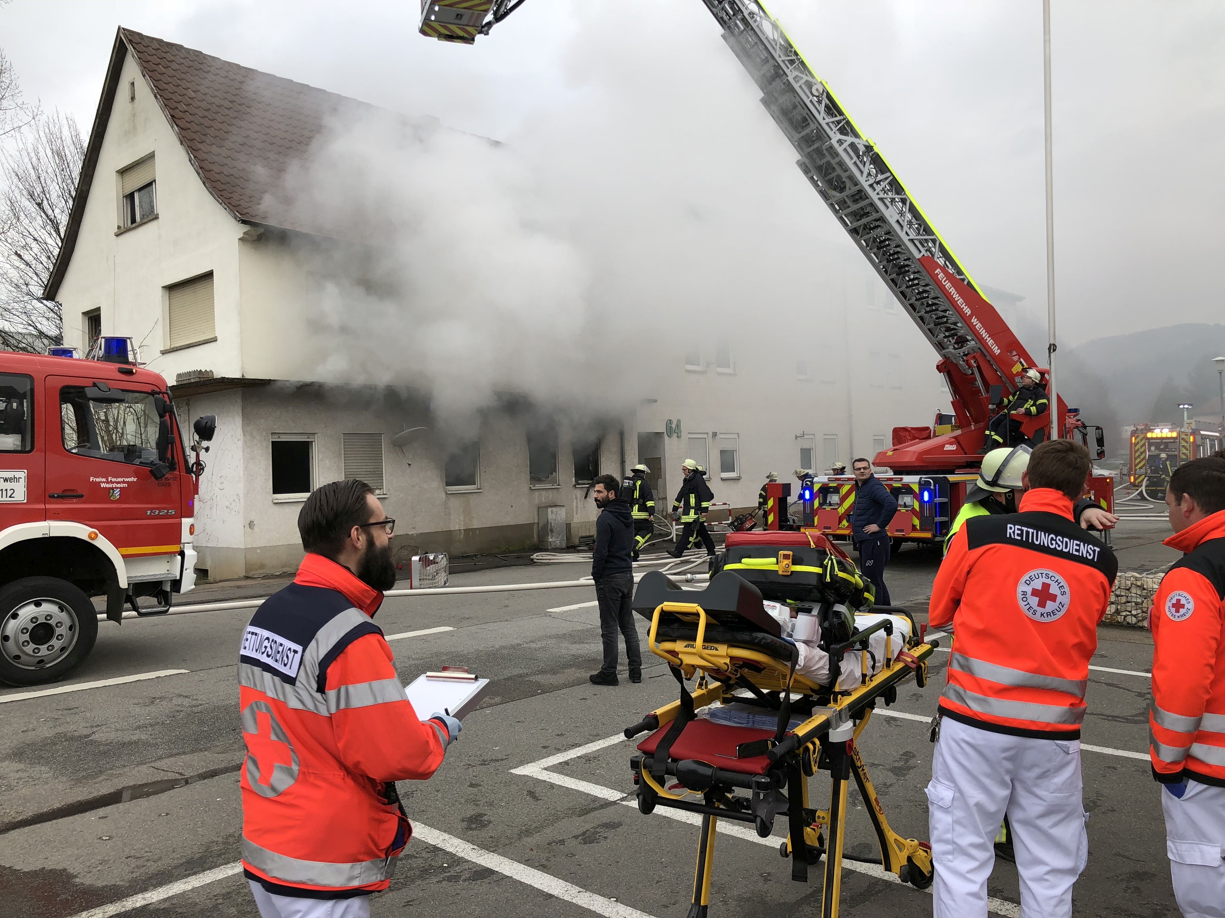 Insgesamt konnten 4 Personen aus dem Gebäude durch die Feuerwehr gerettet werden. Der Rettungsdienst war mit einem Großaufgebot von